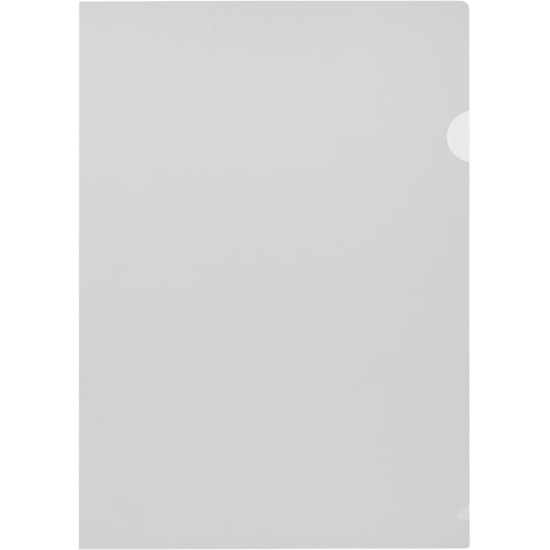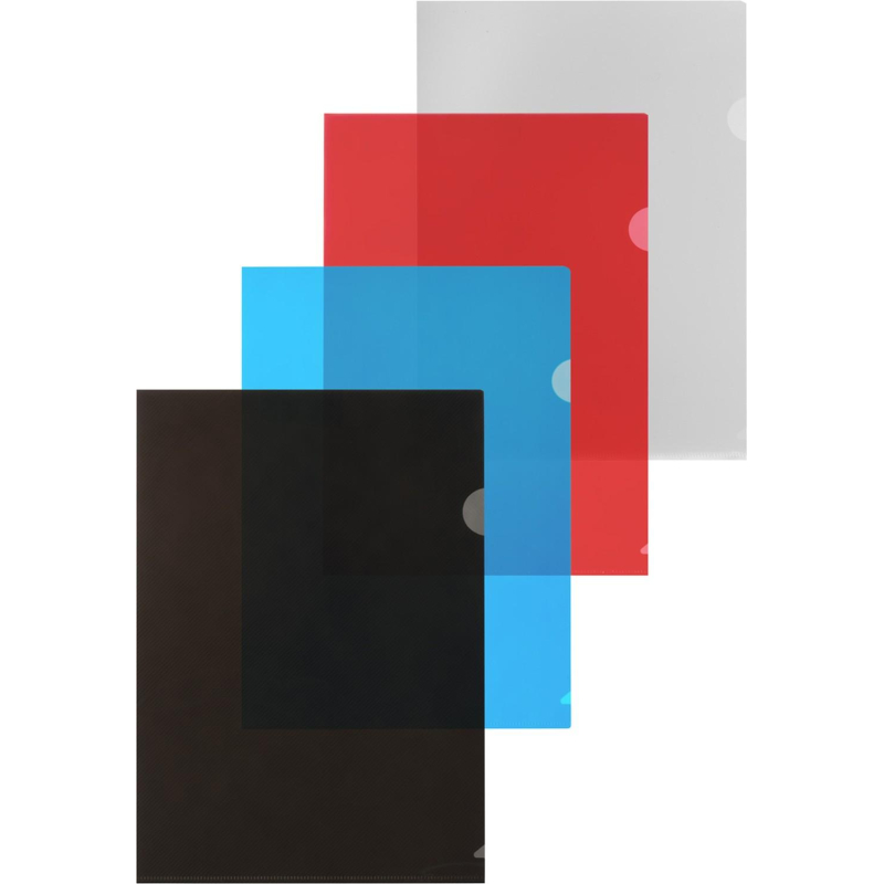 Папка-уголок формата А4 изготовлена из полипропилена. Толщина пленки - 100 мкм. Папка вмещает до 40 листов стандартной плотности. В упаковке 100 штук. Товар относится к ценовому сегменту «суперэконом». Имеет упрощенные характеристики и более простую упаковку. Отвечает основным требованиям потребления.
