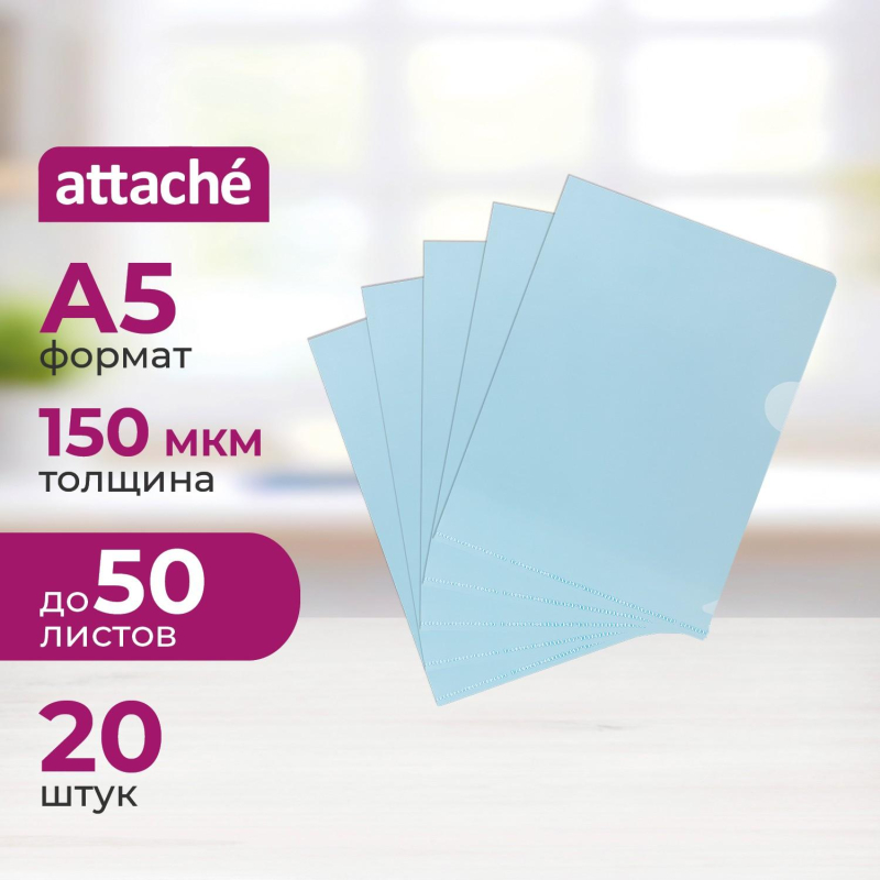 Папка-уголок Attache формата А5 изготовлена из полипропилена синего цвета. Толщина пленки: 150 мкм. В упаковке 20 штук. Позволяет удобно хранить и переносить документы формата А5, предотвращает их смятие и загрязнение.