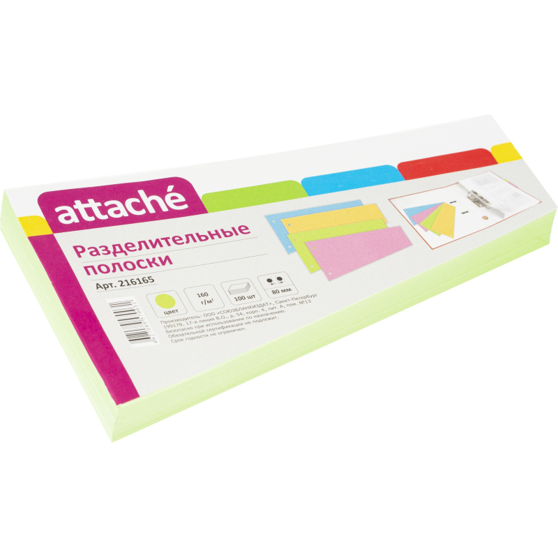 Разделители листов (полоски) Attache размером 23x12 см выполнены из картона пастельно-зеленого цвета, имеют форму трапеции. Плотность материала составляет 160 г/кв.м. Позволяют делать пометки, систематизировать документы для быстрого поиска. Благодаря двум перфорациям разделители могут подшиваться в папки с кольцевыми и арочными механизмами. В упаковке 100 разделительных полосок.