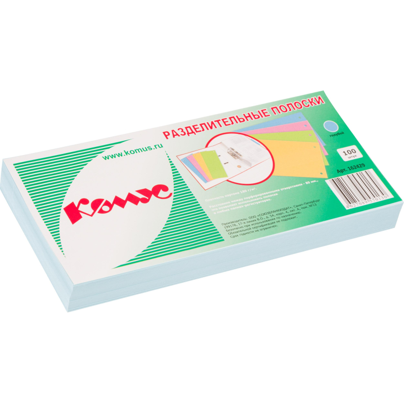 Разделители листов (полоски) "Комус" размером 10,5х24 см выполнены из картона плотностью 180 г/кв.м голубого цвета. Позволяют делать пометки, систематизировать документы для быстрого поиска. Благодаря двум перфорациям разделители могут подшиваться в папки с кольцевыми и арочными механизмами. В упаковке 100 разделительных полосок. В рамках ребрендинга производится перевод дизайна данного артикула с сохранением всех потребительских характеристик товара. На переходный период допускается поставка данной продукции в двух вариантах дизайна.