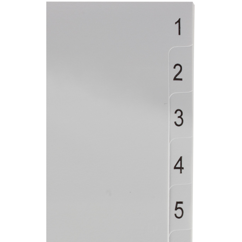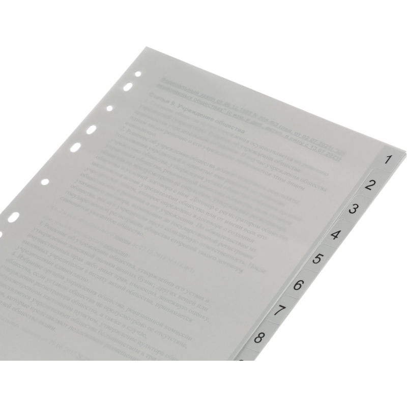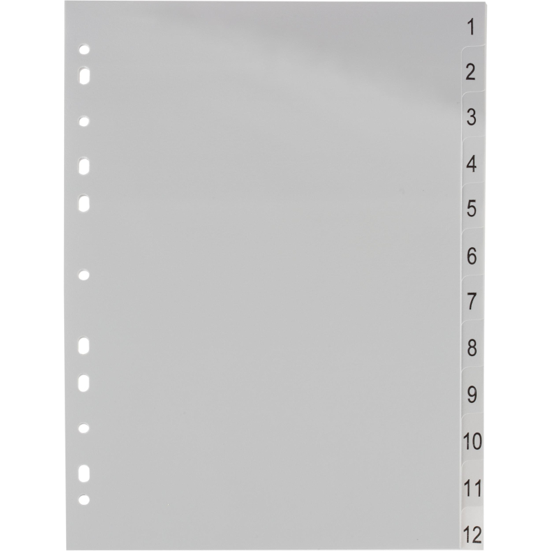 Разделители - это отличный вариант для систематизации документов внутри папок разного вида. Они помогают сортировать информацию в том виде, как нужно именно Вам. Разделители листов "Комус" формата А4 изготовлены из пластика серого цвета толщиной 140 мкм. Предназначены для учета, классификации и удобной систематизации документов в архивных папках. Маркированы цифрами, облегчают поиск нужных позиций. Универсальная боковая перфорация совместима с кольцевыми и арочными механизмами. В комплекте 12 разделителей листов.