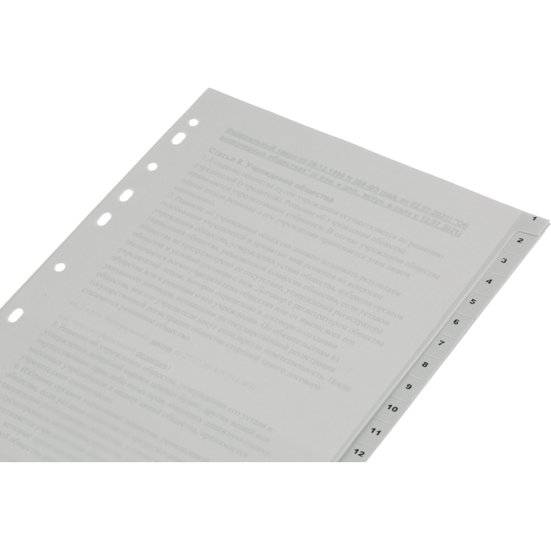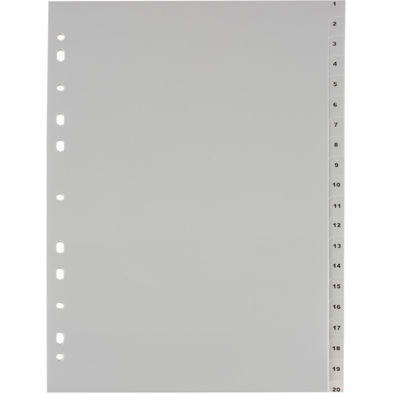 Разделители - это отличный вариант для систематизации документов внутри папок разного вида. Они помогают сортировать информацию в том виде, как нужно именно Вам. Разделители листов "Комус" формата А4 изготовлены из пластика серого цвета толщиной 140 мкм. Предназначены для учета, классификации и удобной систематизации документов в архивных папках. Маркированы цифрами, облегчают поиск нужных позиций. Универсальная боковая перфорация совместима с кольцевыми и арочными механизмами. В комплекте 20 разделителей листов.