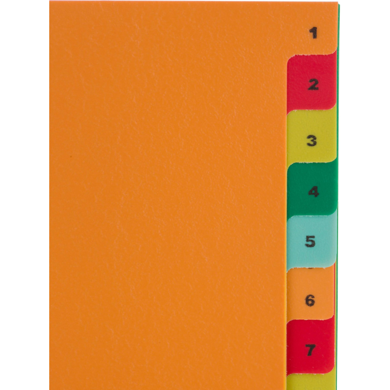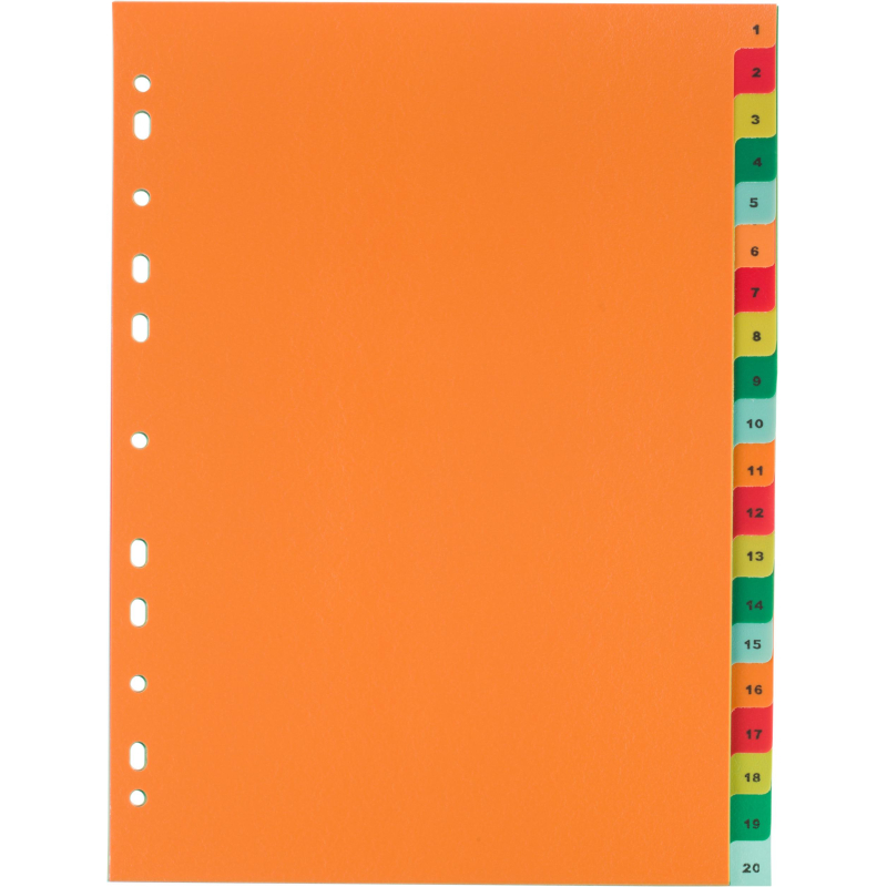 Разделители - это отличный вариант для систематизации документов внутри папок разного вида. Они помогают сортировать информацию в том виде, как нужно именно Вам. Разделители листов Комус формата А4 цветные, облегчающие систематизацию архивных и текущих документов. Размер - 290x210 мм. Выполнены из прочного пластика толщиной 150 мкм. Имеют универсальную перфорацию для подшивки в папки. Разделители листов включают цифровой индекс на 20 разделов.