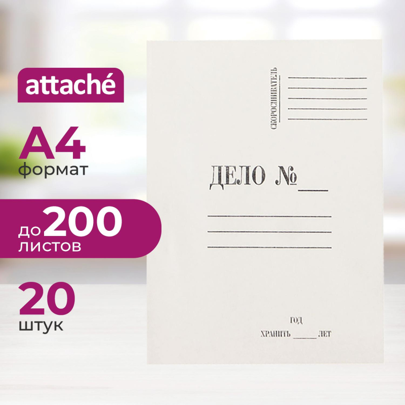 Папка-скоросшиватель Дело формата А4 изготовлена из белого мелованного картона (плотность 380 г/кв.м). Оснащена металлическим механизмом сшивания, скоросшиватель крепится с внешней стороны. Длина усиков составляет 45-50 мм. Ширина корешка данного скоросшивателя составляет от 20 до 25 мм. Размер изделия - 220x20x310 мм. Вместимость - до 200 листов стандартной плотности. Папка-скоросшиватель поставляется по 20 штук в упаковке. Законодательные и технические документы