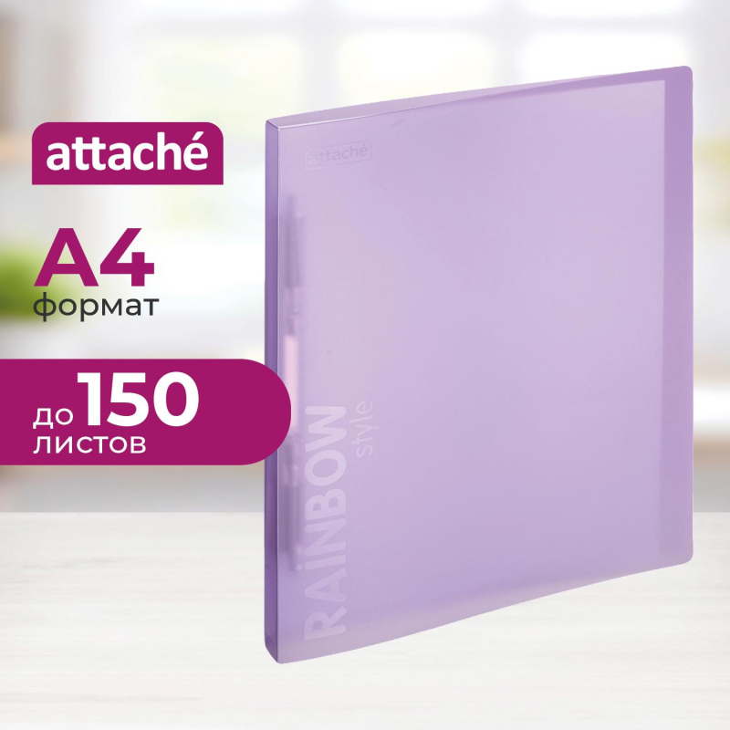 Скоросшиватель используется для хранения различного рода документации, для ведения документооборота, систематизации договоров, других важных бумаг. Папка-скоросшиватель Attache Rainbow Style с пружинным механизмом изготовлен из полипропилена толщиной 0,45 мм. Формат А4. Ширина корешка - 15 мм, вместимость - 150 листов стандартной плотности. Цвет - фиолетовый 1.положите скоросшиватель на горизонтальную поверхность, откройте его; 2.большим и указательным пальцами придайте пружинам вертикальное положение; 3.снимите планку со штырей движением вверх; 4.поместите перфорированные листы внутрь папки на штырьки-пружины; 5.поверх листов разместите ранее снятую планку, прижмите ее к бумаге; 6.с помощью большого и указательного пальцев разведите штырьки-пружины в противоположные направления.