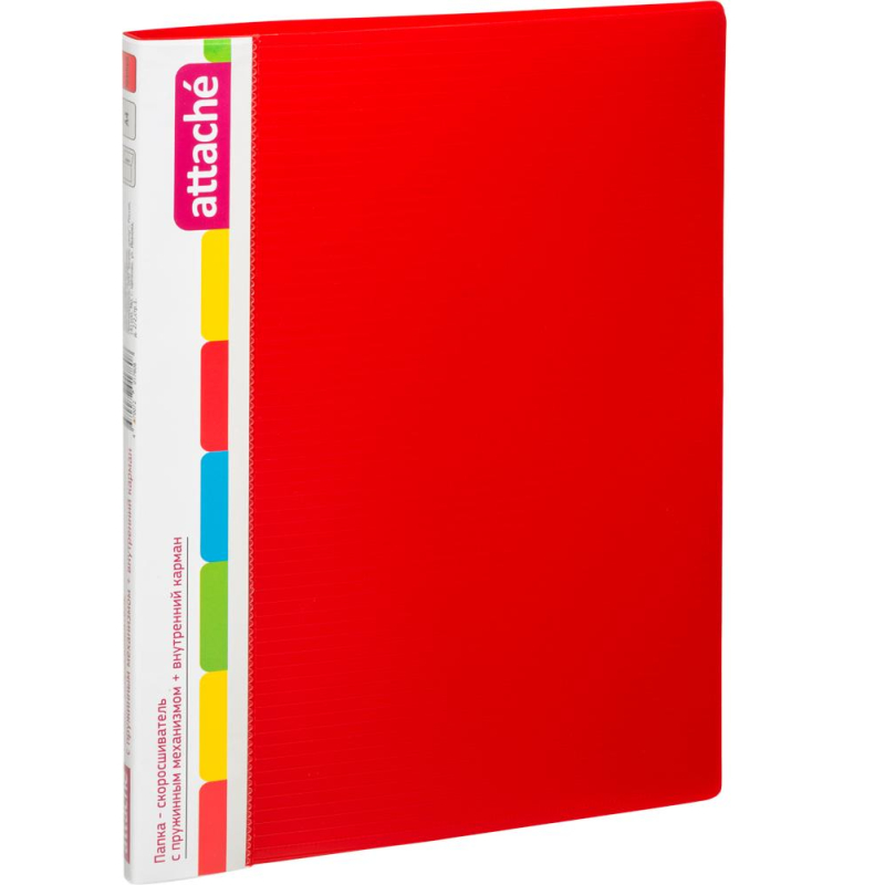 Скоросшиватель с пружинным механизмом Attache используется для хранения различного рода документации, для ведения документооборота, систематизации договоров, других важных бумаг. Формат А4. Папка изготовлена из пропилена толщиной 0,7 мм. Имеет прозрачный карман на левой внутренней обложке для документов. Ширина корешка - 16 мм, вместимость - 200 листов стандартной плотности. Цвет - красный. 1.положите скоросшиватель на горизонтальную поверхность, откройте его; 2.большим и указательным пальцами придайте пружинам вертикальное положение; 3.снимите планку со штырей движением вверх; 4.поместите перфорированные листы внутрь папки на штырьки-пружины; 5.поверх листов разместите ранее снятую планку, прижмите ее к бумаге; 6.с помощью большого и указательного пальцев разведите штырьки-пружины в противоположные направления.
