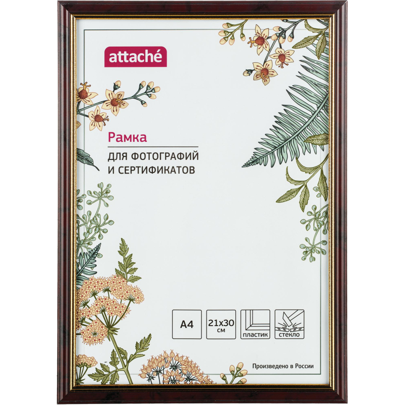 Рамка Attache А4 21x30 см пластиковый багет 15 мм красное дерево - стильное обрамление для ваших воспоминаний. Пластиковая рамка цвета красного дерева станет изящным дополнением вашего интерьера и поможет сохранить ценные воспоминания. Элегантный дизайн: рамка цвета красного дерева придаст интерьеру нотку классической элегантности. Универсальность: рамка идеально подходит для оформления фотографий, дипломов, сертификатов и других памятных изображений. Практичность: настенное размещение - рамка оснащена подвесом для удобного размещения на стене дома или в офисе. Надежная защита: прочное стекло защитит ваши фотографии от пыли и повреждений. Характеристики: материал рамки: пластик (цвет красного дерева). Материал вставки: стекло. Материал задника: картон. Размер фото: 21x30 сантиметров. Размер рамки: 23x32 сантиметров. Толщина рамки: 16 миллиметров. Ширина рамки: 15 миллиметров. Тип размещения: настенный. Упаковка: пленка. Сохраните ваши драгоценные воспоминания в стильной рамке Attache!