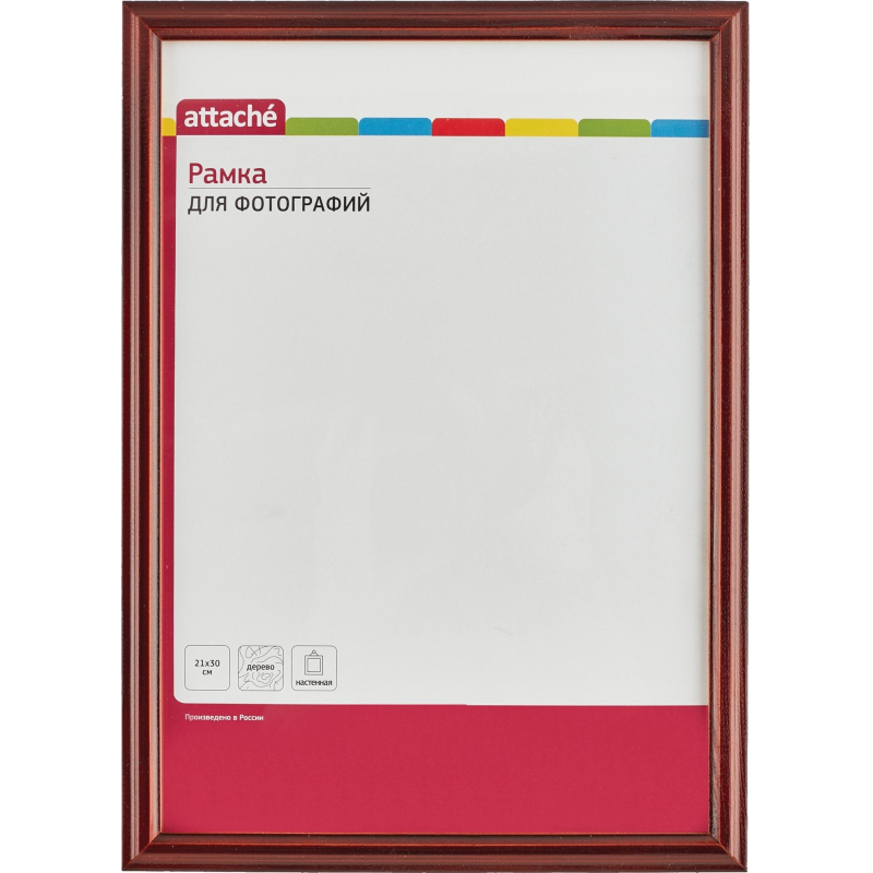 Рамка Attache А4 21x30 см деревянный багет 14 мм коньяк - настенная рамка для сертификатов, дипломов и других демонстрационных материалов. Рамка изготовлена из деревянного лакированного багета и оснащена защитным стеклом, что придает ей особую прочность. Настольное размещение невозможно. Рамка Attache - это стильный и практичный выбор для надежного хранения фотографий, документов, сертификатов, а также отличное решение для вашего интерьера! Материал багета: дерево. Материал вставки: стекло. Материал задника: картон. Толщина багета: 14 миллиметров. Ширина багета: 14 миллиметров. Цвет багета: коньяк. Вставка съемная. Тип размещения: настенный. Тип крепления задника: лепестки. Размер фото: 21x30 сантиметров. Размер изделия: 23x32 сантиметров. Упаковка: пленка.