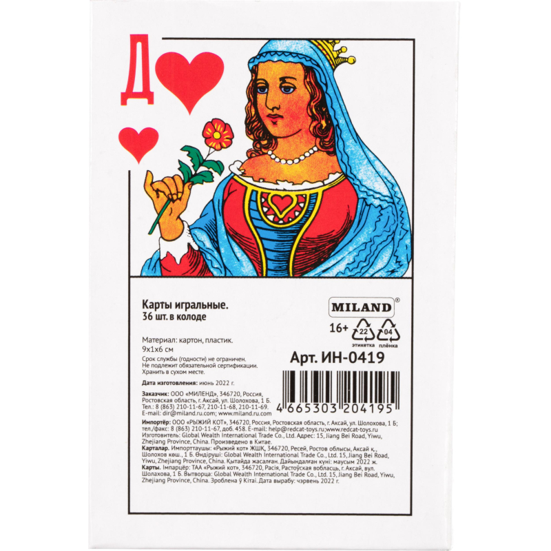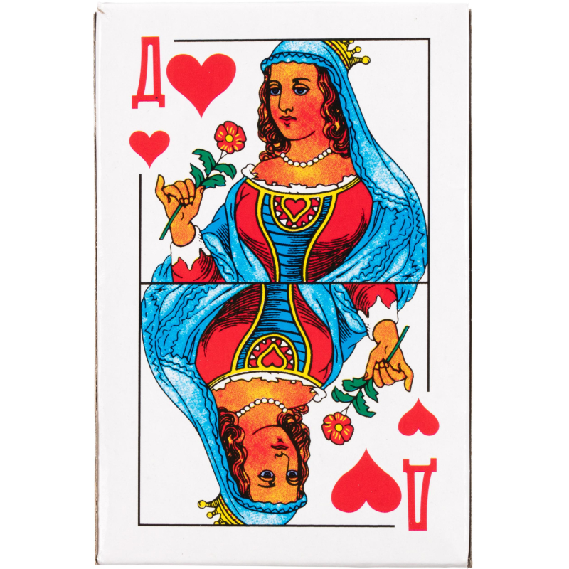 Настольная игра Карты игральные атласные (36 штук в колоде). Атласные игральные карты носят свое название не из-за материала изготовления, как может показаться на первый взгляд. Первоначально понятие атласные относилось к среднему сорту карт, производимых в Российской Империи. Печать происходила на натертой тальком бумаге, их было удобно тасовать и они не боялись влаги. Со временем название атласные закрепилось именно за рисунком карт, сделанном академиком Шарлеманем, а не за техникой печати. Со второй половины XIX века атласная колода получила широкое распространение и стала традиционной российской карточной колодой. Размер упаковки: 87х17x58 мм. Комплектация: - игральные карты - 36 штук.