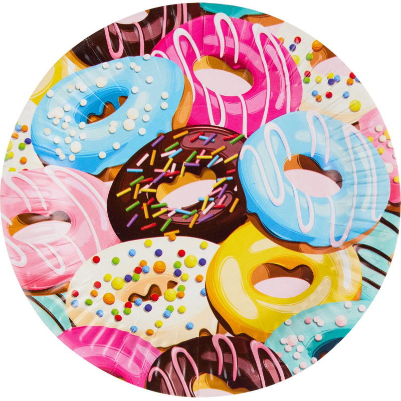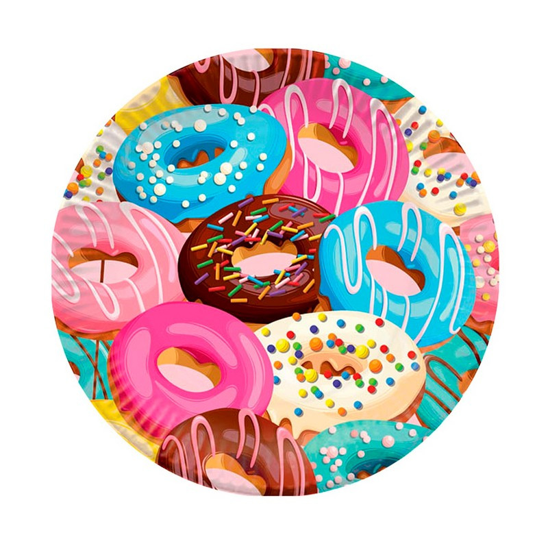 Тарелки одноразовые Пончики - это коллекция посуды для настоящих сладкоежек. Яркие одноразовые тарелки обазятельно станут украшением праздничного стола. Диаметр: 18 см. В упаковке 6 штук.