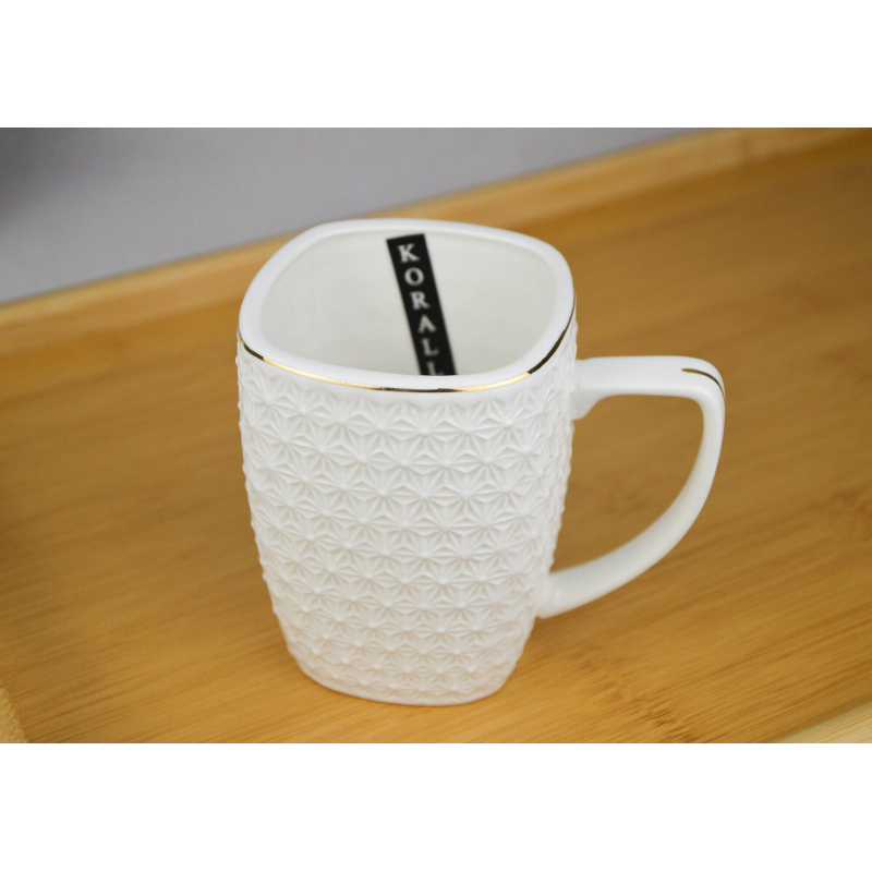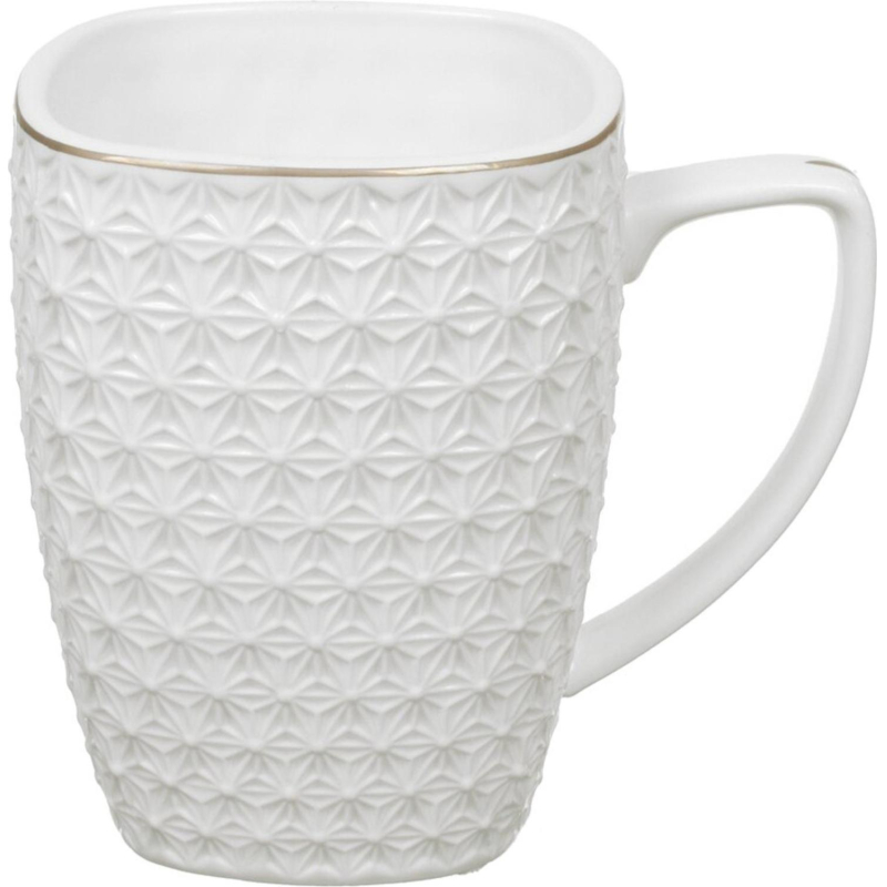Роскошная кружка Снежная королева изготовлена из прочной керамики. Узор нанесен по квадратной форме и напоминает переплетение нитей. Обводка золотом подчеркивает элегантность изделия. Обводка: 10% настоящего золота. Объем кружки: 330 мл. Размер кружки (ВxШxГ): 12.5x8x12 см. Размер кружки в упаковке: 30x20x11 см. Рекомендации по уходу: не рекомендуется использование в микроволновой печи и посудомоечной машине. Мыть мягкой губкой без применения абразивных средств.