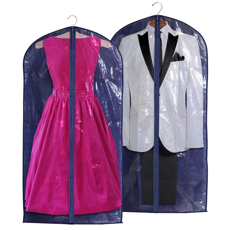 Чехол комбинированный предназначен для хранения костюмов, плащей, легких пальто и курток. Лицевая сторона чехлов выполнена из прозрачного полиэтилена. Воздухопроницаемый материал, защищает от пыли и моли, синий цвет препятствует проникновению ультрафиолетовых лучей и пожелтению изделия. Состав ткани: 60% спанбонд, 40% полиэстер