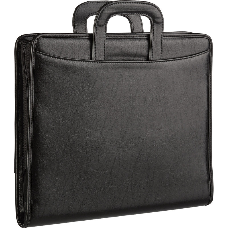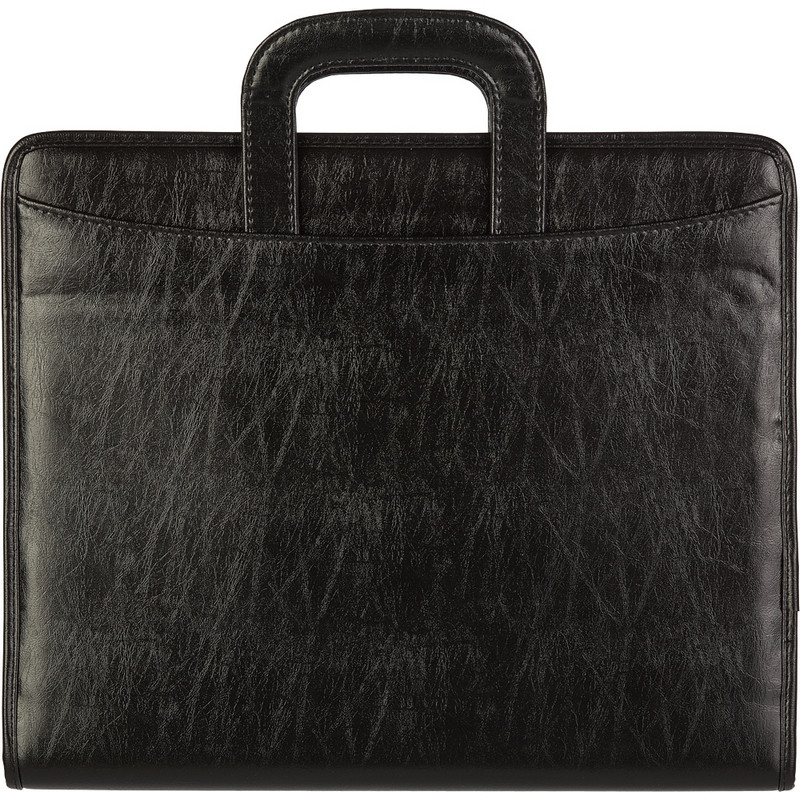 Папка Навигатор 108и на молнии, с выдвижными ручками, VIP-серия. Размер 360х300х50 мм. Материал - заменитель кожи, цвет черный. Папка на молнии с выдвигающимися ручками, благодаря которым можно использовать папку как портфель. Имеет два накладных кармана, внутреннее отделение, застегивающееся на кнопку, держатель для ручки и много кармашков разного размера.
