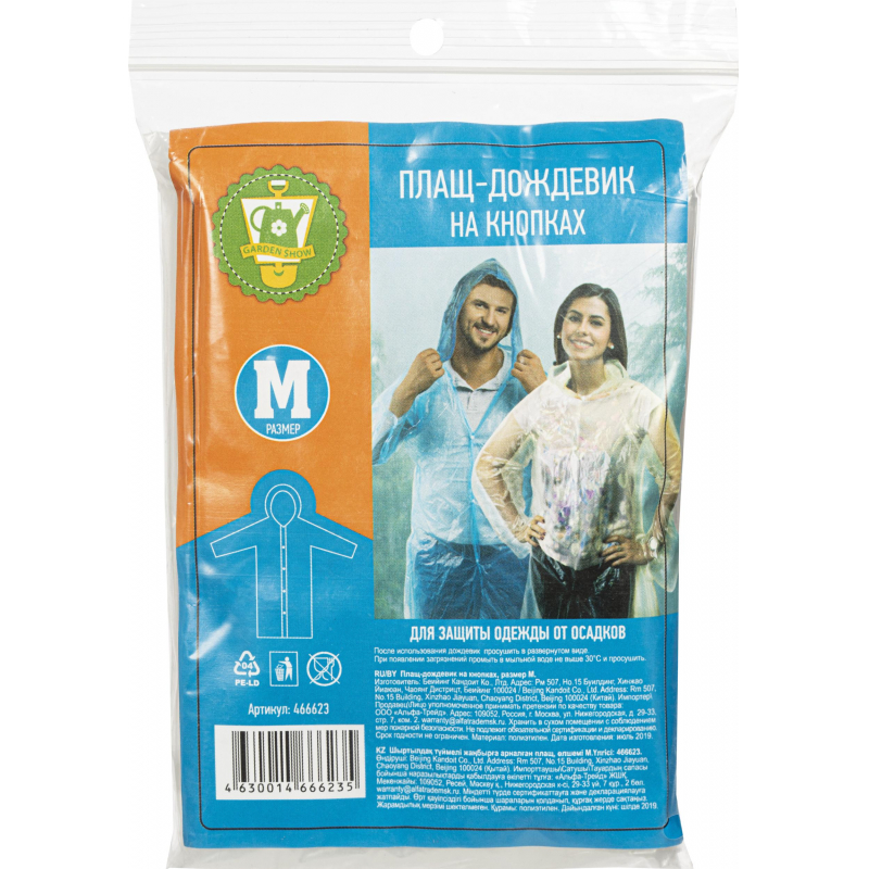 Дождевик фирмы Garden Show прозрачный с кнопками. Размер - M. Предназначен для защиты от дождя и занимает мало места. Идеально подходит для защиты в непогоду.
