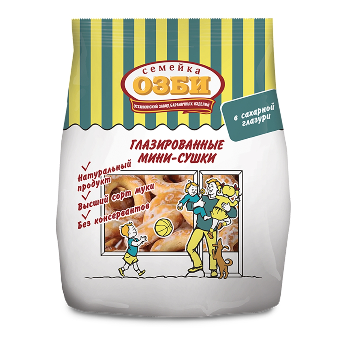 Сушки Семейка ОЗБИ глазированные мини 150 г.Натуральный продукт без консервантов. Изготовлен по старинной классической технологии.Состав: мука пшеничная хлебопекарная высшего сорта/сахар/вода/масло растительное/соль/дрожжи хлебопекарные прессованные.Пищевая ценность на 100г: белки 9г/жиры 6.5г/углеводы 69г.Энергетическая ценность 320 ккал.Хранить при температуре не выше 25'С и относительной влажности воздуха 65-75%.