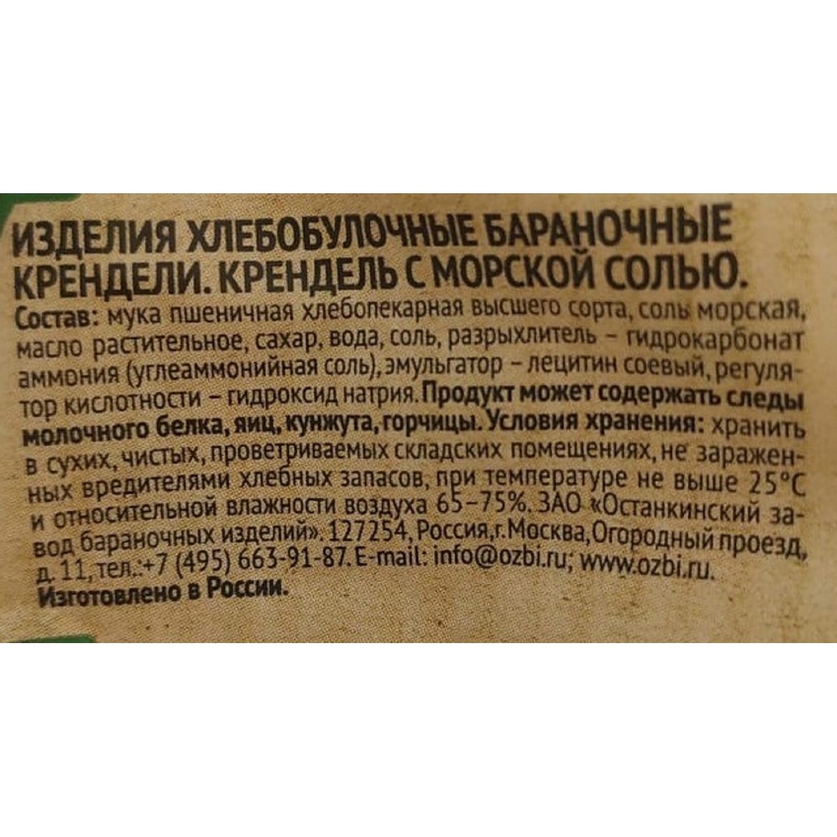Крендели Bitcom с морской солью 130 г. Состав: мука пшеничная хлебопекарная высшего сорта, соль морская, масло растительное, сахар, вода, соль, разрыхлитель - гидрокарбонат аммония (углеаммонийная соль), эмульгатор - лецитин соевый, регулятор кислотности - гидроксид натрия. Продукт может содержать следы молочного белка, яиц, кунжута, горчицы. Пищевая ценность: белки - 9,7 г, жиры - 6,6 г, углеводы - 69,4 г. Энергетическая ценность: 375 ккал, 1590 кДж.