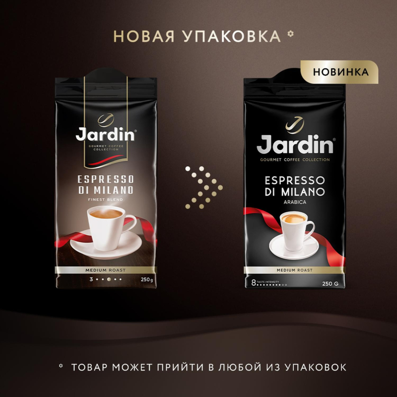 Кофе молотый Jardin Espresso di Milano смесь Арабики и Робусты 250 г - это бленд зерен арабики темной обжарки из Южной Америки в сочетании с легким прикосновением робусты. Интенсивный эспрессо с плотной текстурой - мощный заряд кофейного вкуса в лучших традициях Северной Италии. Состав: смесь арабики и робусты. Степень обжарки: средняя. Вид кофе: молотый. Степень помола: тонкий. Способ приготовления: приготовить в кофеварке, кофемашине или френч- прессе. Вес: 250 г. Тип упаковки: вакуумный пакет. Условия хранения: плотно закрытый пакет хранить в сухом прохладном месте. Страна производства: Россия.