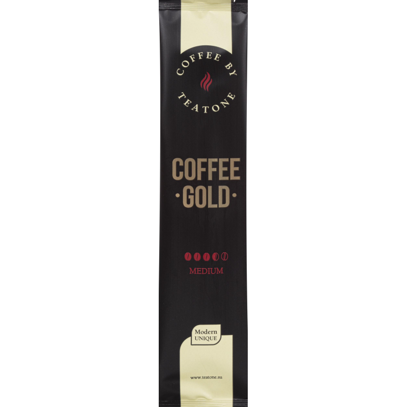 Кофе порционный растворимый Teatone "Gold" 15 стиков по 1.8 г. Кофейный стик ?Teatone? обладает изысканным вкусом и глубоким ароматом в сочетании с удобством приготовления. Кофе изготовлен из зерен элитных сортов арабики, тщательно собранных и обжаренных до золотистого цвета по традиционной технологии. Состав: кофе натуральный растворимый сублимированный. Хранить при температуре не выше 20°С и относительной влажности воздуха не более 75%. Способ приготовления: опустите стик в чашку (125-150 мл), залейте горячей водой (95°C), дайте настояться (1-2 минут), при необходимости добавьте сахар, перемешайте стиком. ТУ 9198-002-31027530-2015