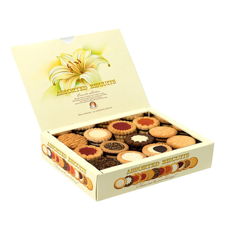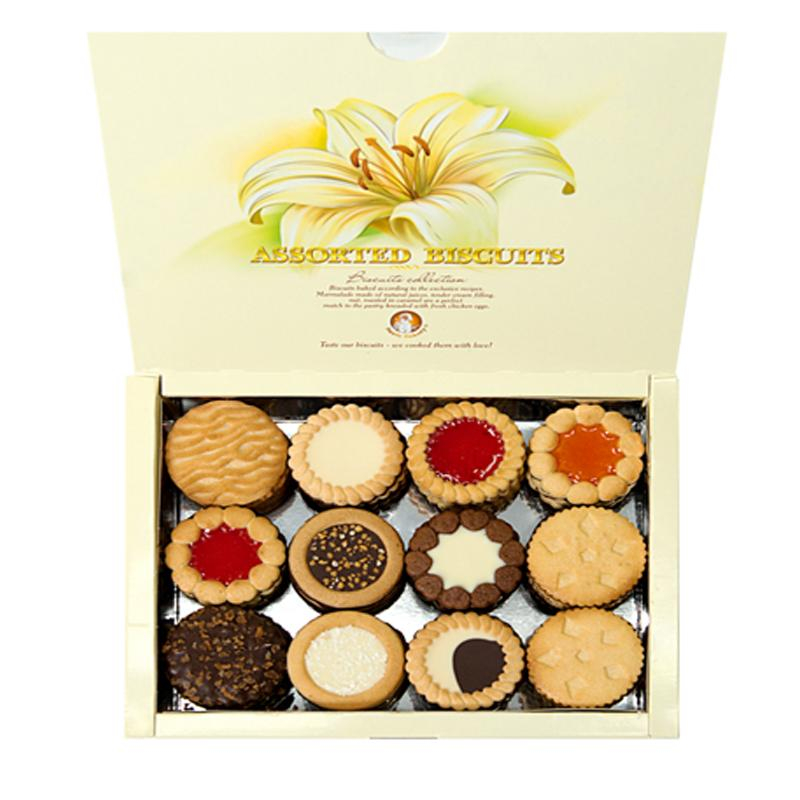 Печенье сдобное Бискотти ассорти 12 видов - это великолепная коллекция высококачественного печенья, которая включает в себя наибольшее разнообразие яркого, красивого, вкуснейшего печенья. Пожалуй, лучший вариант для ознакомления с множеством достойных видов печенья Бискотти, способный подарить приятные впечатление и настоящее удовольствие от наслаждения прекрасным лакомством. Презентабельная фирменная упаковка с 12 видами печенья внесет праздничную атмосферу в домашнее чаепитие, а также послужит жестом внимания, благодарности, любви и заботы к дорогим и близким людям. В составе изумительного ассорти представлены следующие варианты печенья: Коста Браво апельсин - сдобное печенье, сочетающее в себе начинку из яркого апельсинового мармелада, с нежным слоем шоколадной глазури. Стоит отметить, что мармелад варится на натуральном соке. Коста Браво вишня сочетает насыщенный вкус вишневого мармелада, сваренного на натуральном соке, сдобное печенье и тонкий слой шоколадной глазури. Бискотти с апельсиновым мармеладом - удачный тандем цитрусовых нот нежной начинки и хрустящего печенья. Бискотти с вишневым мармеладом - не менее яркий и гармоничный вкус для тех, кто любит насыщенные нотки вишни. Бискотти с кремом - изумительное рассыпчатое печенье с нежным кремом и шоколадной глазурью - это настоящее произведение кондитерского искусства: великолепный вкус и услада для глаз! Бискотти шокко - печенье с шоколадной глазурью, ничего лишнего, гармоничный союз. Бискотти с орехом - ароматное печенье с тертым орехом в тесте и в шоколадной начинке. Декор из дробленного фундука в карамели и шоколадная глазурь на донышке идеально подчеркивают насыщенный вкус этого безупречного десерта. Бискотти с кокосом - это настоящее счастье для гурмана. Нежное сочетание сдобного теста с кокосовой начинкой не оставляет никого равнодушным. Кроме того, тертое ядро кокоса добавляется в состав теста и служит внешней посыпкой печенья. Красивое, белоснежное и такое вкусное. Невозможно пройти мимо. Бискотти ноттэ - это контрастное лакомство, созданное из темного печенья и белого крема в начинке. Прекрасное сочетание идеально подчеркивается шоколадной глазурью, доставляя истинное наслаждение своим поклонникам. Печенье с фундуком и шоколадом - выпечка из теста с тертым орехом, декорированное дробленным орехом сверху и нежным шоколадом и бисквитными хлопьями снизу. Не тает в руках. Удивительно насыщенный и яркий вкус! Печенье Нежное - изумительно нежное, тающее во рту печенье, которое удивит внешней простотой и очарует прекрасным вкусом. Печенье сдобное Неробьянко - это чудесное рассыпчатое печенье, украшенное контрастным тандемом шоколадного и молочного крема с шоколадной глазурью на донышке. Глазированное, хрустящее и по-настоящему вкусное - оно оставляет лишь приятные впечатления. Попробуйте печенье Бискотти Ассорти, выберите для себя самый любимый вариант или наслаждайтесь удивительным многообразием великолепных начинок на ароматном печенье. Состав: мука пшеничная в/с, сахарная пудра, молочный шоколад (сахар, какао-масло, молоко сухое цельное, какао тертое, сыворотка сухая молочная, эмульгатор лецитин, ароматизатор ванилин), жир растительный, начинка - масса молочная (сахар, жир растительный, молоко сухое обезжиренное, эмульгатор лецитин, антиоки