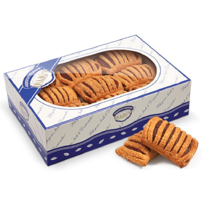 Печенье Полет штрудлики с малиной 500 г - это оригинальный слоеный десерт с малиной, который станет приятным десертом за любым застольем. Состав: наполнитель малиновый (сахар, патока, яблочное пюре, ягоды малины, стабилизаторы: Е1442, пектины; регуляторы кислотности: цитраты натрия, фосфаты кальция; ароматизатор, краситель натуральный - кармины), мука пшеничная хлебопекарная в/с, маргарин (рафинированные дезодорированные растительные масла, вода питьевая, эмульгаторы: моно- и диглицериды жирных кислот, лецитин; соль поваренная пищевая, регулятор кислотности - лимонная кислота, краситель натуральный - каротины), вода питьевая, сахар, молоко сухое обезжиренное, сухая молочная сыворотка, сухая пшеничная клейковина, консервант- сорбат калия, ароматизаторы. Пищевая ценность на 100 г продукта: белки - 4,3 г, жиры - 9,8 г, углеводы - 67,0 г. Энергетическая ценность на 100 г продукта: 375 ккал/1575 кДж. Хранить при температуре от 13 до 23 °С и относительной влажности воздуха не более 75%