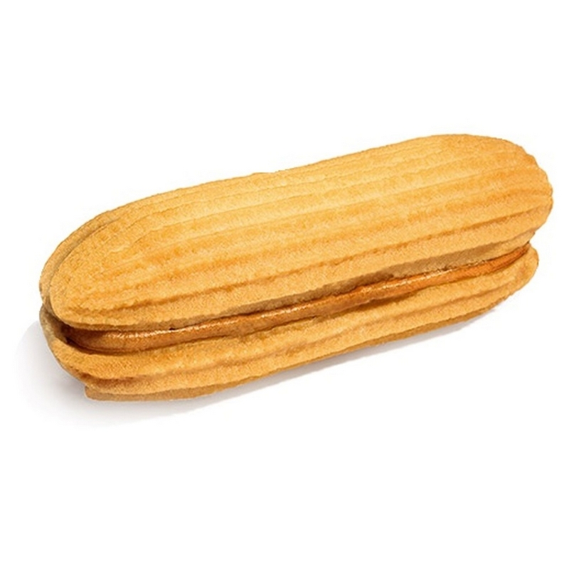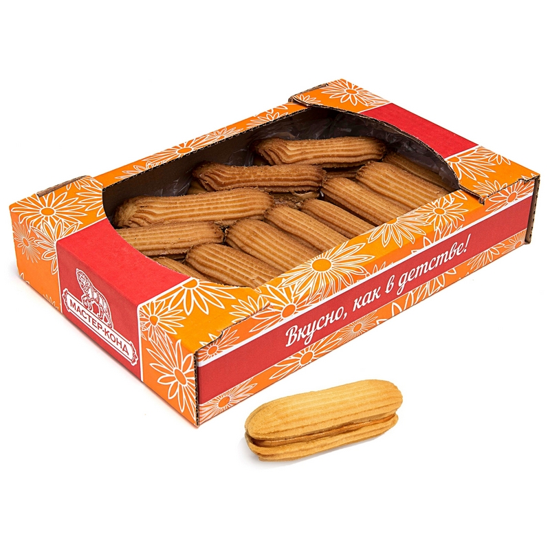 Песочное печенье Северная столица 'Полоска' в виде двух палочек, соединенных между собой нежнейшим кремом из вареной сгущенки. Состав: мука пшеничная высший сорт, маргарин "Столовый молочный" (дезодорированные растительные масла, вода питьевая, соль поваренная, эмульгатор (моно- и диглицериды пищевых жирных кислот), лецитин соевый, природный краситель бета-каротин, ароматизатор "Сливочное масло", консервант кислота сорбиновая, регулятор кислотности кислота молочная), продукт растительно-молокосодержащий сгущенный с сахаром "Сгущенка вареная" (сахар, вода, молоко сухое обезжиренное, сыворотка молочная сухая, заменитель молочного жира, стабилизатор Е406, ароматизатор "Вареная сгущенка", сахар-песок, жир специального назначения Cremarin Profi (рафинированные дезодорированные растительные масла), яичный меланж (сухой) пастеризованный, ароматизаторы "Сгущенка вареная", "Ванилин". Пищевая ценность на 100 г продукта: белки - 6 г, жиры - 29 г, углеводы - 54 г. Энергетическая ценность на 100 г продукта: 504 ккал/2110 кДж. Условия хранения: хранить при температуре (18+/-5)°С и относительной влажности воздуха не более 75%. Вес: 650 г. Страна производства: Россия. Тип упаковки: картонная коробка. Срок годности: 90 суток.