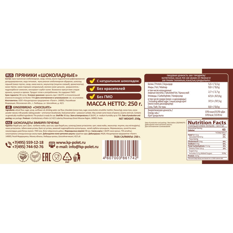 Пряники Полет Шоколадные. Это тот самый Вкус, когда все было Натуральное, как в Детстве! Помните то Время! Мы да! Это настоящий и полностью натуральный пряник из горького шоколада и какао масла.