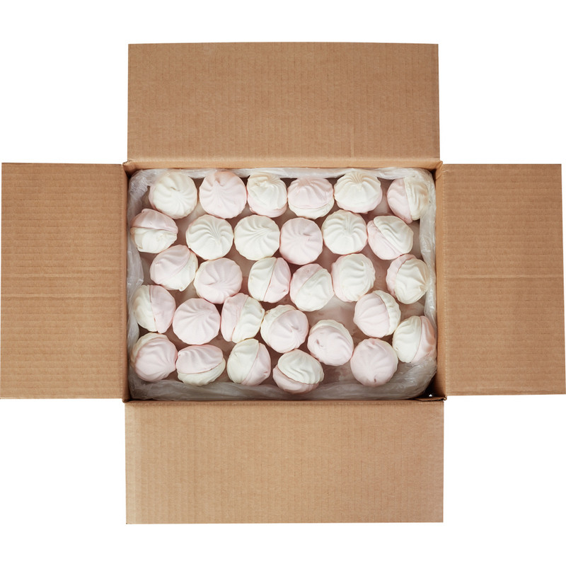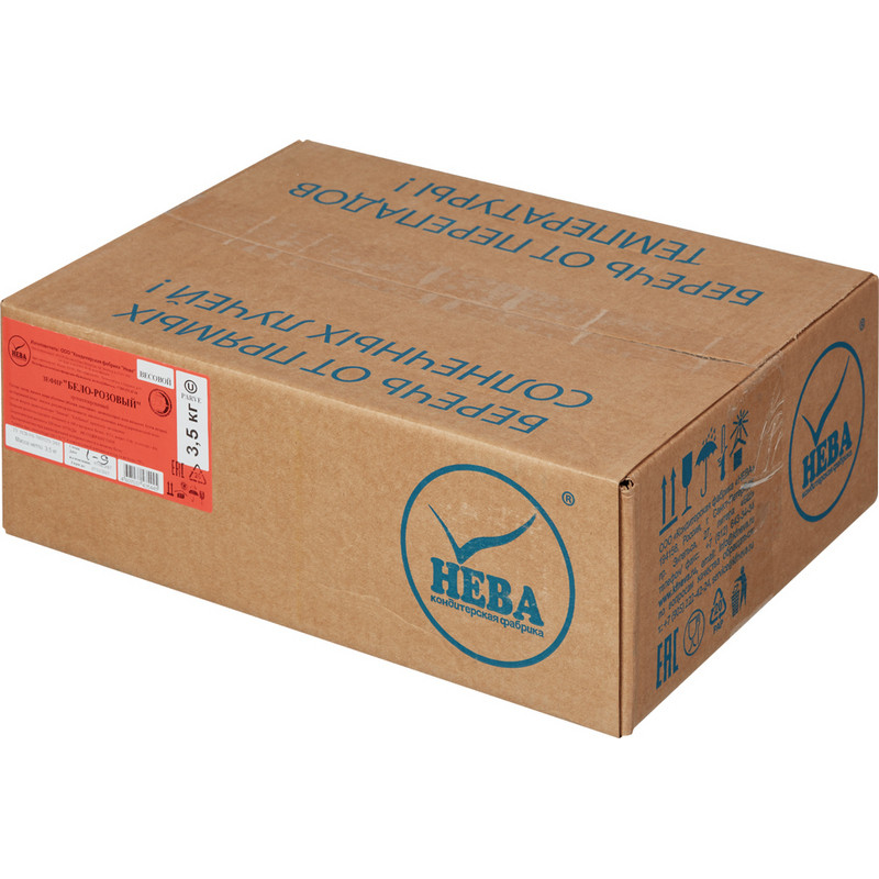 Зефир Нева бело-розовый. Состав этого лакомства максимально приближен к классическому рецепту. Именно использование натурального сырья и минимального количества исскуственных добавок (обычно только ароматизаторы и красители) делает его популярным у потребителей. Чудесный бело-розовый зефир - любимое лакомство сладкоежек. Состав: сахар-песок, патока, пюре яблочное, вода, белок яичный, желирующий агент: пектин, регулятор кислотности: кислота молочная, влагоудерживающий агент: лактат натрия, ароматизаторы: Клубника, Ваниль, натуральный краситель антоциан. Пищевая ценность на 100 г продукта: белки - 0,47 г, жиры - 0,04 г, углеводы: 80,39 г. Энергетическая ценность на 100 г продукта: 305 ккал. Вес: 3.5 кг. Тип упаковки: картонная. Срок годности: 3 месяца. Условия хранения: в сухом прохладном месте при температуре от 15 до 21 °С.