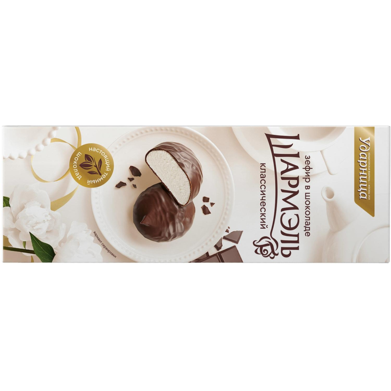 Классический зефир Шармэль в глазури из молочного шоколада со вкусом пломбира. В картонной коробке 120 г, зефир дополнительно упакован в целлофан. Легкий и некалорийный десерт подойдет для чаепития. Вкус в продукте удачно сочетается со вкусом шоколадной глазури. Пищевая ценность на 100г: белки - 2,4г, жиров - 11,1г, углеводов - 65,6г Энергетическая ценность: 378 ккал/1583кДж. Условия хранения: при температуре не более 25 градусов Цельсия и относительной влажности воздуха не более 75%. Не подвергать воздействию прямого солнечного света. Не допускать резкого колебания температур. Производитель: ОАО 'Ударница'. Страна производства: Россия.
