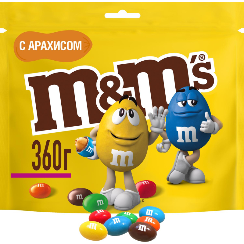 Драже M&M's с арахисом 360 г - популярное разноцветное лакомство, которое любят и взрослые, и дети по всему миру. Яркие драже радуют своих потребителей не только на земле, но и в космосе, прочно заняв позицию в продовольственных запасах космонавтов. Ядро арахиса, покрытое нежным молочным шоколадом и хрустящей глазурью, моментально вызывает аппетит и поднимает настроение сочными красками и сладким шоколадно-ореховым вкусом. Большим преимуществом является то, драже M&M's не тает в руках и не оставляет сладкие и липкие следы. При этом во рту оно быстро растворяется, доставляя удовольствие всем сладкоежкам.Драже M&M's с арахисом давно перестали быть обычным лакомством. Кроме приятной функции подкрепления, улучшения настроения и подъема энергии, они являются неотъемлемой частью украшения многих кондитерских шедевров, а также наполнением праздничных сладких столов и любимым угощением для детей всех возрастов.Большая упаковка весом 360 г - это еще больше удовольствия, которым можно поделиться с друзьями и коллегами, а также разбавить ими свое чаепитие или подкрепиться во время рабочих будней, прогулок и поездок.Состав: молочный шоколад (сахар, какао тертое, сухое цельное молоко, сухой сывороточный пермеат (из молочного сырья), какао масло, эквивалент масла какао (масло пальмовое, масло ши), эмульгатор (соевый лецитин), ароматизатор (масляная кислота)); сахар, арахис, крахмал кукурузный, масло пальмовое рафинированное дезодорированное, глюкозный сироп (кукурузный, пшеничный), мальтодекстрин, загуститель (гуммиарабик), крахмал рисовый, красители (красный свекольный, куркумин, каротины, Е172, Е133, карбонат кальция), глазирователь (воск карнаубский), жир специального назначения (масло пальмоядровое). Может содержать незначительное количество глютена ячменя. Средние значения пищевой ценности (100 г): белки - 9,5 г; жиры - 24,6 г; углеводы - 58,7 г.Энергетическая ценность (100 г): 501 ккал / 2098 кДж. Молочный шоколад содержит: общий сухой остаток какао - не менее 25 %; сухой обезжиренный остаток какао - не менее 2,5 %; сухой молочный остаток - не менее 12 %; молочный жир - не менее 2,5 %. Молочный шоколад содержит до 5 % растительных жиров-эквивалентов масла какао в дополнение к маслу какао. Трансизомеров ненасыщенных жирных кислот в шоколаде - не более 1 %. Хранить при температуре от +5 °С до +22 °С и относительной влажности воздуха не более 70 %. Содержание какао-продуктов в шоколадной массе - не менее 25 %.Вес: 360 г.Тип упаковки: мягкая.Страна производства: Россия.Срок хранения: 7 месяцев.