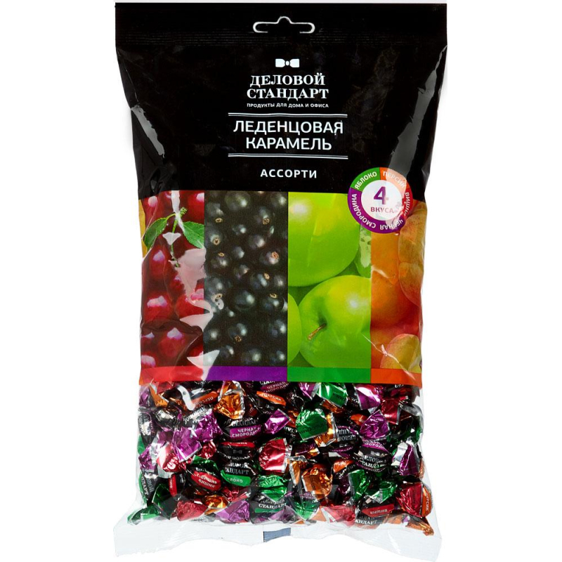 Леденцовая карамель 'Деловой стандарт' - это вкусное и натуральное лакомство, наслаждаться которым можно практически бесконечно. В нашей карамели, приготовленной по традиционным рецептам, есть вкусы сочной вишни, зеленого яблоко, ароматного персика и черной смородины. Состав: сахар, сироп мальтозный, пищевые добавки: регулятор кислотности - кислота лимонная, ароматизаторы (вишня, персик, черная смородина, яблоко), красители пищевые (кармин Е120, антоцианы Е163, экстракт паприки Е160с). Пищевая ценность в 100 г продукта: жиров - 0.1 г, углеводов - 97 г. Энергетическая ценность: 380 ккал/1591 кДж. Тип упаковки: картонная. Вес: 500 г. Хранить при температуре 18+3 °C и относительной влажности воздуха не более 75%. Срок годности: 12 месяцев. Страна производства: Россия. Изготовитель: ООО 'Малвикъ'.