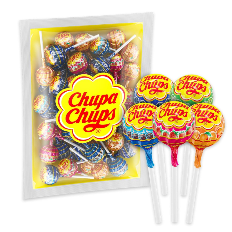 Ассорти карамели Chupa Chups со вкусом фруктов и колы (42 штуки в пакете). Состав: Карамель Chupa Chups со вкусом клубники. Состав: сахар, глюкозный сироп, регуляторы кислотности (лимонная кислота, молочная кислота), концентрированная фруктовая паста (концентрированный сок из яблок, апельсинов, лайма, ананаса, лимона, вишни, черники, арбуза, ежевики, пюре из яблок, клубники, персика, малины, банана, манго, киви), ароматизатор, краситель (красный свекольный). Может содержать следы молока. Пищевая ценность 100 г продукта (средние значения): углеводы - 95 г. Энергетическая ценность (калорийность): 1630 кДж (380 ккал). Карамель Chupa Chups со вкусом зеленого яблока. Состав: сахар, глюкозный сироп, регуляторы кислотности (лимонная кислота, молочная кислота), концентрированная фруктовая паста (концентрированный сок из яблок, апельсинов, лайма, ананаса, лимона, вишни, черники, арбуза, ежевики, пюре из яблок, клубники, персика, малины, банана, манго, киви), ароматизатор, краситель (куркумин). Может содержать следы молока. Пищевая ценность 100 г продукта (средние значения): углеводы - 94 г. Энергетическая ценность (калорийность): 1630 кДж (380 ккал). Карамель Chupa Chups со вкусом апельсина. Состав: сахар, глюкозный сироп, регуляторы кислотности (лимонная кислота, молочная кислота), концентрированная фруктовая паста (концентрированный сок из яблок, апельсинов, лайма, ананаса, лимона, вишни, черники, арбуза, ежевики, пюре из яблок, клубники, персика, малины, банана, манго, киви), натуральный ароматизатор, краситель (экстракт паприки). Может содержать следы молока. Пищевая ценность 100 г продукта (средние значения): углеводы - 94 г. Энергетическая ценность (калорийность): 1630 кДж (380 ккал). Карамель Chupa Chups со вкусом ежевики. Состав: сахар, глюкозный сироп, регуляторы кислотности (лимонная кислота, молочная кислота), концентрированная фруктовая паста (концентрированный сок из яблок, апельсинов, лайма, ананаса, лимона, вишни, черники, арбуза, ежевики, пюре из яблок, клубники, персика, малины, банана, манго, киви), ароматизаторы, краситель (красный свекольный). Может содержать следы молока. Пищевая ценность 100 г продукта (средние значения): углеводы - 94 г. Энергетическая ценность (калорийность): 1630 кДж (380 ккал). Карамель Chupa Chups со вкусом колы. Состав: сахар, глюкозный сироп, регуляторы кислотности (лимонная кислота, молочная кислота), ароматизатор, краситель (сахарный колер IV, полученный по аммиачно-сульфитной технологии). Может содержать следы молока. Пищевая ценность 100 г продукта (средние значения): углеводы - 95 г. Энергетическая ценность (калорийность): 1630 кДж (380 ккал). Хранить при температуре не более 40 °С и относительной влажности воздуха не более 60%. Избегать попадания прямого солнечного света.