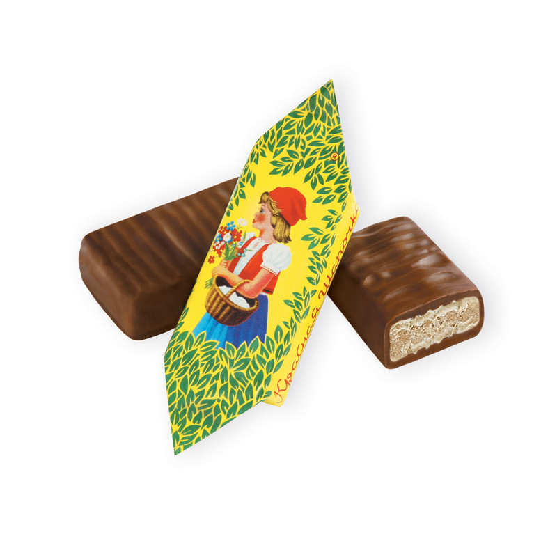 Конфеты шоколадные Красный Октябрь 'Красная шапочка' 250 г - это замечательные конфеты, известные не понаслышке каждому сладкоежке. Они созданы из тонких слоев хрустящих вафельных пластин, соединенных ароматным кремом пралине и укрытых волнистой шоколадной глазурью. Шоколадные конфеты 'Красная шапочка' - прекрасное угощение к чаю и кофе. Они украсят собой домашние посиделки в кругу семьи, и станут замечательным подспорьем для приема неожиданных гостей. Яркий и насыщенный вкус отлично дополняет терпкие нотки чая и дарит приятные моменты наслаждения. Сладкий перекус придется кстати и во время офисных будней. Он поможет отдохнуть и зарядиться новыми силами для продолжения плодотворной деятельности. Шоколадные конфеты способствуют лучшей работе мозга и усилению концентрации внимания. Конфеты 'Красная шапочка' - традиционное угощение в составе сладких пакетов на новогодние и рождественские праздники. Если вы предпочитаете выбирать лакомства для своих родных и близких самостоятельно, эти конфеты станут отличным решением для покупки. Герметичная упаковка надолго сохраняет свежесть и товарные качества конфет. А сквозь прозрачный пакет можно легко разглядеть знакомые конфетки в традиционном желтом фантике с изображением девочки из любимой сказки. Состав: шоколадная глазурь (сахар, какао тертое, эквивалент масла какао (рафинированные, дезодорированные, фракционированные, негидрогенизированны?е растительные масла (пальмовое, ши)), какао порошок, эмульгаторы: лецитин соевый, Е476, ароматизатор 'Ванильный'), сахар, арахис тертый, вафли листовые (вода питьевая, мука пшеничная хлебопекарная в/с, масло подсолнечное (рафинированное, дезодорированное), меланж сухой яичный, эмульгатор лецитин соевый, соль, разрыхлитель - гидрокарбонат натрия, регулятор кислотности - лимонная кислота), заменитель масла какао (частично гидрогенизированная фракция пальмового масла, эмульгаторы Е492, лецитин соевый, антиокислители токоферолы, концентрат смеси, лимонная кислота), эмульгатор лецитин соевый), ароматизатор 'Ваниль', антиокислитель - аскорбиновая кислота. Противопоказано при индивидуальной непереносимости белка молока и/или яичного белка. Возможно наличие незначительного количества ореха миндаля, ореха кешью, сухого цельного молока. Масса нетто: 250 грамм. Тип упаковки: мягкая. Страна производства: Россия. Срок хранения: 9 месяцев.
