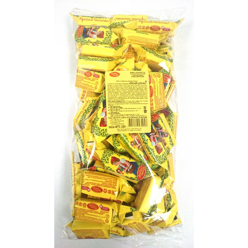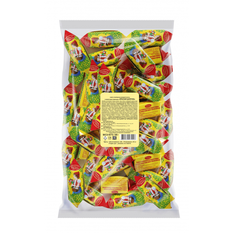 Конфеты шоколадные Красный Октябрь Красная шапочка 1 кг - Нежное пралине с добавлением тертого арахиса. Состав: шоколадная глазурь (сахар, какао тертое, эквивалент масла какао (рафинированные, дезодорированные, фракционированные, негидрогенизированные растительные масла (пальмовое, ши)), какао порошок, эмульгаторы: лецитин, E476, ароматизатор Ванильный), сахар, арахис тертый, вафли листовые (вода питьевая, мука пшеничная хлебопекарная высший сорт, масло подсолнечное (рафинированное дезодорированное), меланж сухой яичный, эмульгатор лецитин соевый, соль, разрыхлитель - гидрокарбонат натрия, регулятор кислотности - лимонная кислота), заменитель масла какао (частично гидрогенизированная фракция пальмового масла, эмульгаторы: E492, лецитин соевый, антиокислители: токоферолы, концентрат смеси, лимонная кислота), эмульгатор лецитин соевый, ароматизатор Ваниль, антиокислитель - аскорбиновая кислота. Пищевая ценность в 100 г продукта: белки - 7,5 г, жиры - 29 г, углеводы - 58 г. Энергетическая ценность на 100 г продукта: 530 ккал. Хранить при температуре от +15°С до +21°С и относительной влажности воздуха не более 75 %.
