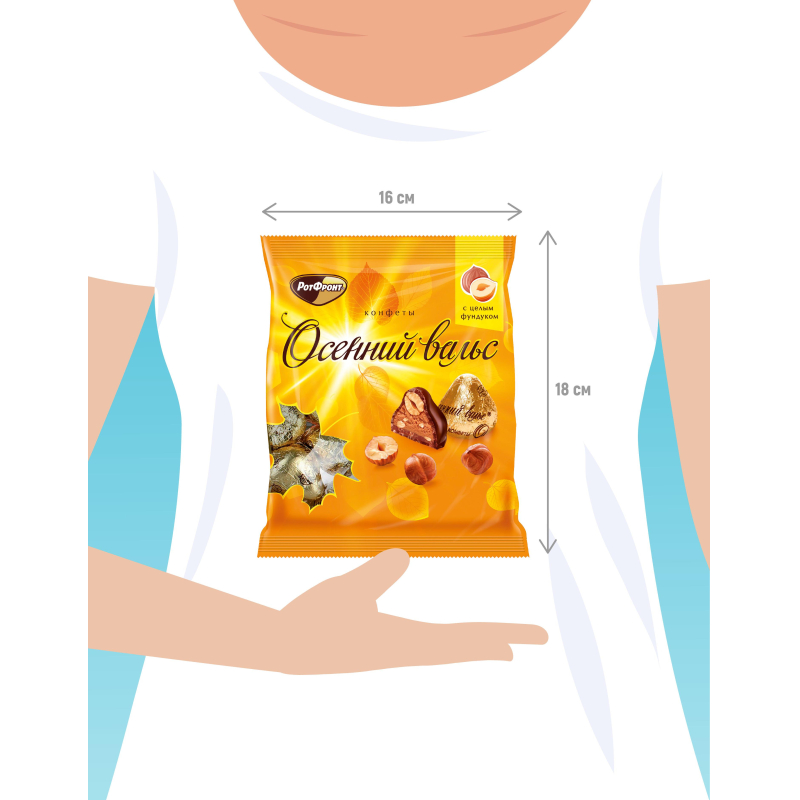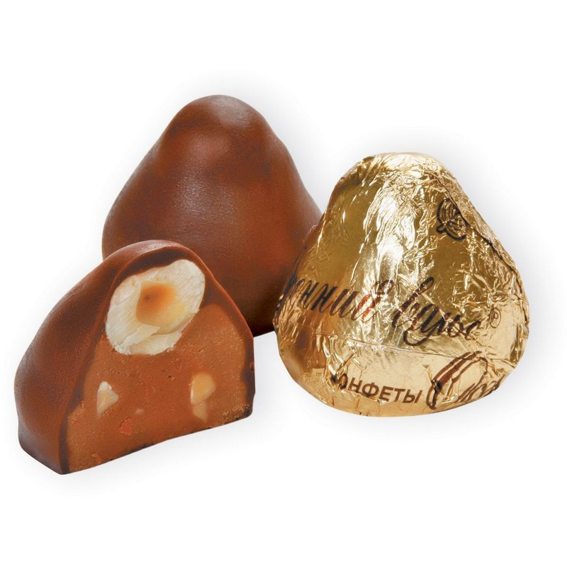 Глазированные шоколадной глазурью куполообразные конфеты из пралине с добавлением жареного дробленого арахиса, на вершине конфеты - целое ядро фундука. Состав: шоколадная глазурь (сахар, какао тертое, эквивалент масла какао (растительные негидрогенизированные масла (пальмовое, ши, иллипе, подсолнечное)), какао - порошок, эмульгаторы: соевый лецитин; Е476, ароматизатор 'Ванильный'), сахар, сухое цельное молоко, арахис тертый, заменитель масла какао (частично гидрогенизированная фракция пальмового масла, эмульгаторы: Е492, лецитин соевый: антиокислители: токоферолы, концентрат смеси лимонная кислота), ядро ореха фундука целое, арахис дробленый, какао-порошок, эмульгаторы: лецитин соевый, антиокислитель - аскорбиновая кислота, ароматизатор 'Ванильный'. Пищевая ценность в 100 г продукта: белки - 11 г, жиры - 34 г, углеводы - 49 г, пищевые волокна - 3,8 г. Энергетическая ценность в 100 г продукта: 550 ккал. Хранить при температуре от +15°С до +21°С и относительной влажности воздуха не более 75 %.
