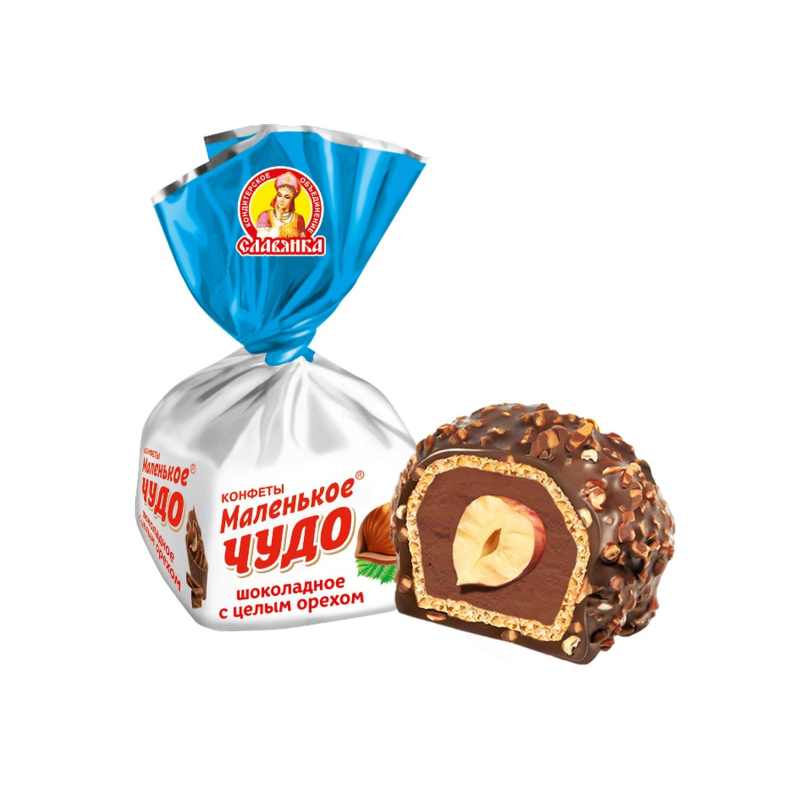 Вафельные конфеты с нежной шоколадно-кремовой начинкой, целым орехом, посыпанные дробленым арахисом и покрытые шоколадной глазурью. Маленькое чудо шоколадное - конфеты, сделанные на основе хрустящего вафельного шара, в котором расположен нежный шоколадный крем. Пикантный вкус сладости придает помещенный внутри цельный фундук. Снаружи конфета щедро посыпана дробленым арахисом и полита молочным шоколадом. Сочетание вкусов придется вам по душе и оставив только положительные впечатления. Состав: сахар, арахис дробленый, заменитель масла какао, жир растительный (масло растительное; антиокислители: Е319, кислота лимонная), мука пшеничная, ядра фундука, молоко сухое обезжиренное, какао-порошок, масло кокосовое, крахмал кукурузный, спирт, желток яичный сухой, кокосовая стружка, эмульгатор лецитин соевый, волокна пшеничные пищевые, ядра фундука тертые, молоко цельное сухое, соль, белок яичный сухой, ароматизаторы, разрыхлитель натрий двууглекислый, улучшитель качества вафель, регулятор кислотности кислота лимонная. Пищевая ценность на 100 г продукта (не менее): Белков - 9.6 г; Жиров - 41.3 г; Углеводов - 42.0 г. Энергетическая ценность на 100 г продукта: 2405 кДж. Условия хранения: хранить при температуре от +15°С до +21°С градусов и относительной влажности воздуха не более 75 %. Не подвергать воздействию прямого солнечного света. Страна производства: Россия.