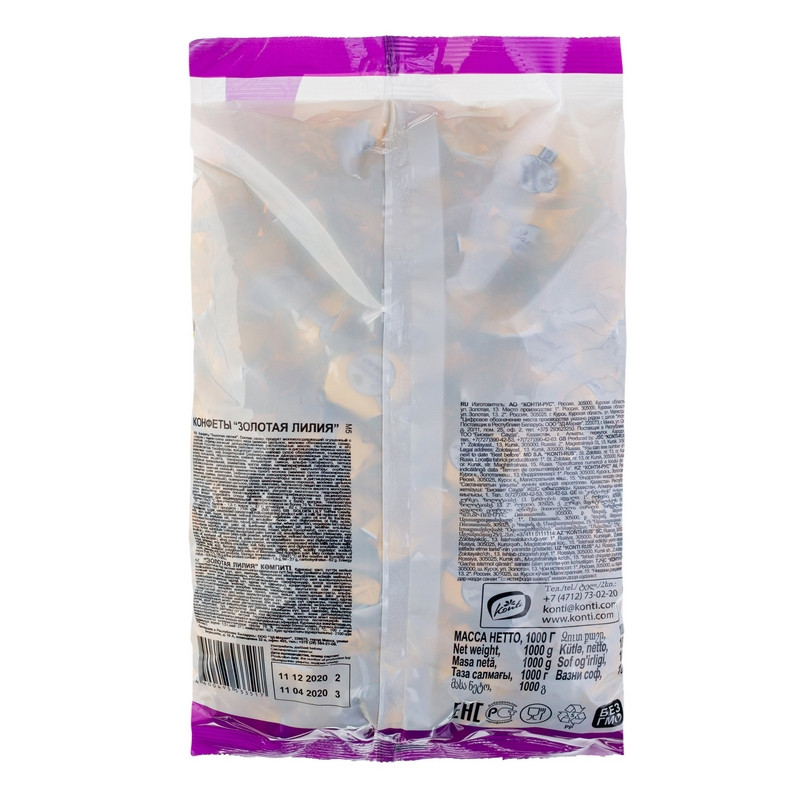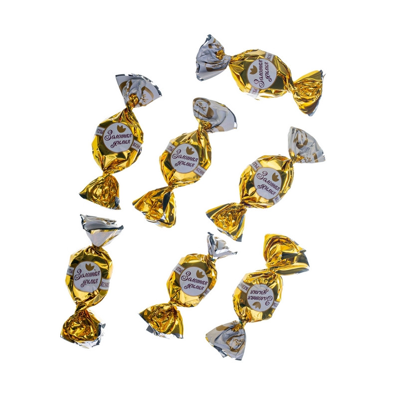Глазированные конфеты на основе нежной ирисной массы с добавлением сгущенного молока. Содержат 17% сгущенного молока. Конфеты "Золотая Лилия". Состав: Сахар, молоко цельное сгущенное с сахаром (молоко цельное, сахар, лактоза), жир растительный гидрогенизированный (рафинированные, дезодорированные растительные масла: подсолнечное, пальмовое и его фракции; эмульгаторы: Е 492, Е 322; антиокислитель Е 306), патока кукурузная крахмальная, инвертный сироп (сахар, регуляторы кислотности (кислота молочная, гидрокарбонат натрия), жир растительный (рафинированные, дезодорированные растительные масла: пальмовое, ши), молоко сухое обезжиренное, сыворотка сухая молочная, какао-порошок, эмульгатор лецитин соевый, соль, эмульгатор Е 471, ароматизаторы, загуститель Е 407, эмульгатор Е 476.