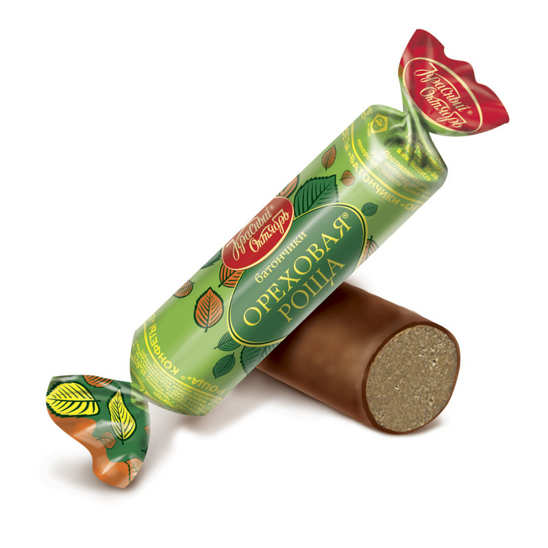 Конфеты батончики Ореховая Роща. Конфеты ?Ореховая роща? подходят в качестве десерта к чаю или кофе. Вес - 5 кг. Длинный тонкий батончик ?Ореховая роща? из нежной ореховой пасты с добавлением какао-порошка и хрустящих кусочков дробленых орешков, покрытый шоколадной глазурью. Бархатистая текстура с насыщенным сливочно-ореховым вкусом и ароматом. Шоколад придает особую прелесть ?Ореховой роще?, оттеняя нотки какао в самом батончике. Белки - 5,4 г., Жиры - 32,2 г., Углеводы - 57,2 г. Энергетическая ценность, ккал: 532.