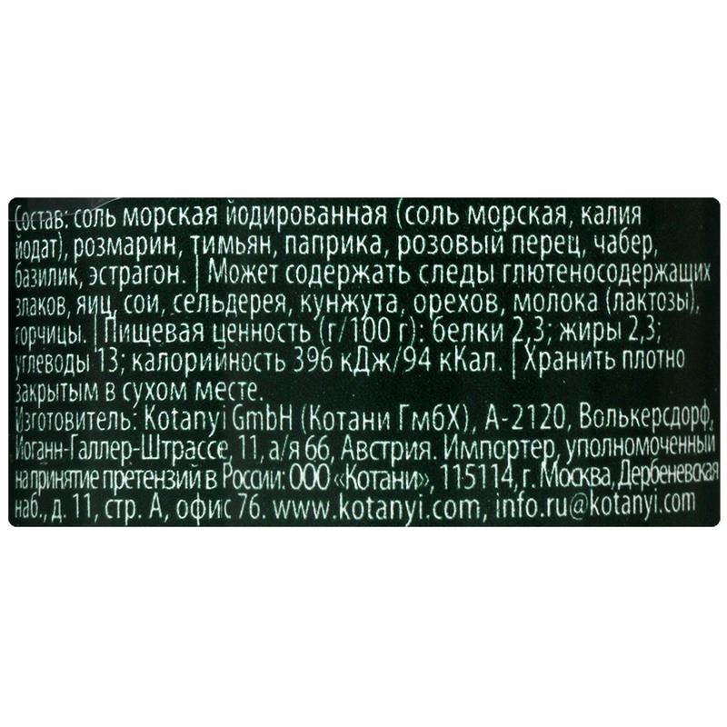 Приправа Kotanyi Итальянские травы мельница 48 г отлично подходит для приготовления томатного соуса, брускетты, пиццы, пасты и других блюд итальянской кухни. Пряные травы Средиземноморья высушиваются особым бережным способом. Благодаря этому во время приготовления раскрывается типичный итальянский манящий аромат, и даже простые блюда приобретают изысканный вкус. Состав: Розмарин, Тимьян, Паприка, Перец розовый, Чабер садовый, Эстрагон, Базилик. Может содержать следы глютеносодержащих злаков, яиц, сои, сельдерея, кунжута. орехов, молока (лактозы), горчицы. Пищевая ценность на 100 г: белки - 2.3 г, углеводы - 13 г, жиры - 2.3 г. Энергетическая ценность на 100 г: 94 ккал. Срок годности: 35 месяцев от даты производства Условия хранения: Хранить в сухом темном месте. Вес: 48 г. Страна производства: Австрия