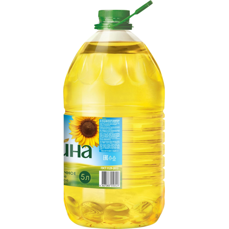 Масло Олейна подсолнечное рафинированное 5 л. Масло подcолнечное Олейна имеет высокую степень очистки и производится только из качественного сырья. Продукт упакован в пятилитровую бутылку, которой хватит на длительное время, что сокращает количество походов в магазин, а также считается более экономичным. Содержание полезных аминокислот, витаминов и микроэлементов способствует поддержанию иммунитета, улучшению зрения, укреплению костной ткани и предотвращает преждевременное старение. Регулярное употребление подсолнечного масла сохранит кожу и волосы в отличном состоянии. Продукт можно использовать для жарки овощей и мяса, добавлять в гарниры и заправлять салаты. Также масло 'Олейна' будет оптимальным вариантом для любителей вегетарианской кухни и здорового питания.Пищевая ценность на 100 г продукта: белки - 0 г, жиры - 99,9 г, углеводы - 0 г.Энергетическая ценность на 100 г продукта: 899 ккал.Условия хранения: хранить в сухом прохладном темном месте.Срок годности: 18 месяцев.Страна производства: Россия.