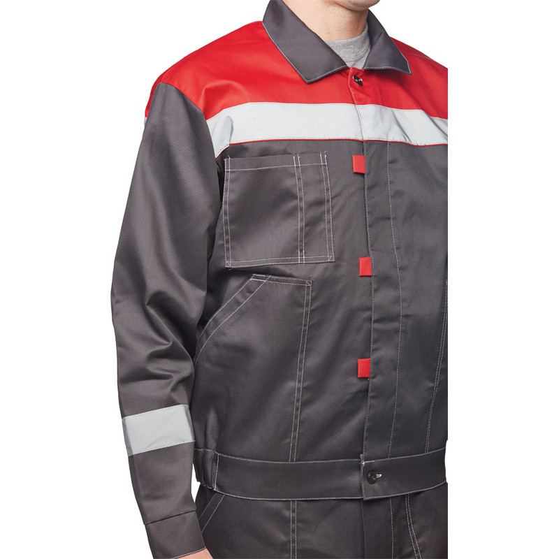 Спецодежда летняя костюм мужской л20-КБР состоит из куртки и брюк (размер 48-50, рост 170-176). Изготовлен из смесовой ткани (65% полиэстер, 35% хлопок), плотностью 210 г/кв.м. Куртка прямого силуэта с притачным поясом и боковыми вставками с эластичной лентой, для лучшего прилегания. Для защиты от истирания локтевая и коленная части костюма усилены. Все элементы костюма выделены контрастной отстрочкой. На кокетке, рукавах, и брючинах светоотражающая полоса - 5 см. Сферы применения: сельское хозяйство, логистика, легкая промышленность, строительство, озеленение. Костюм обеспечивает защиту от производственных загрязнений. ГОСТ 12.4.280-2014, ТР ТС 019/2011. ЗАКОНОДАТЕЛЬНЫЕ И ТЕХНИЧЕСКИЕ ДОКУМЕНТЫ: