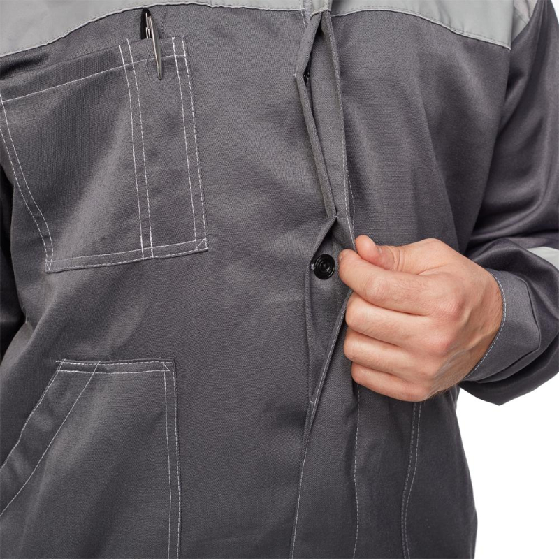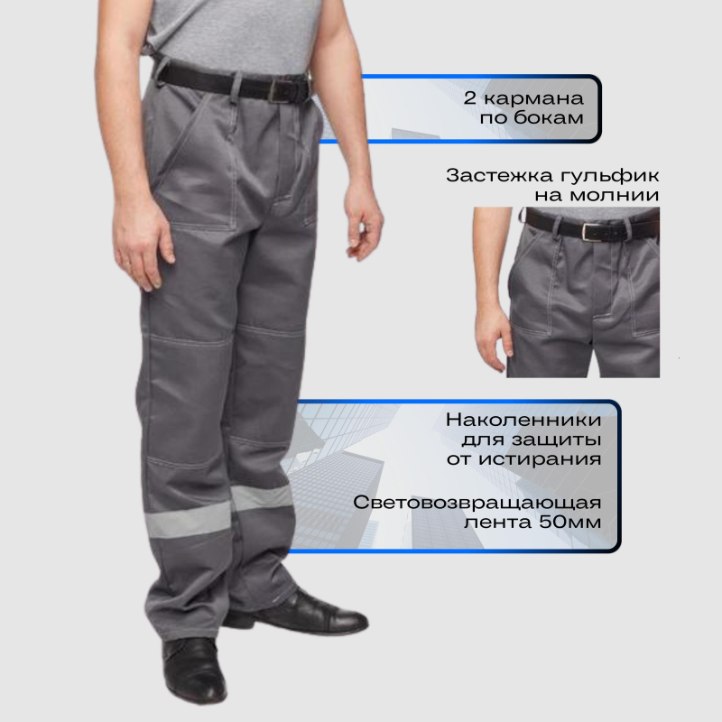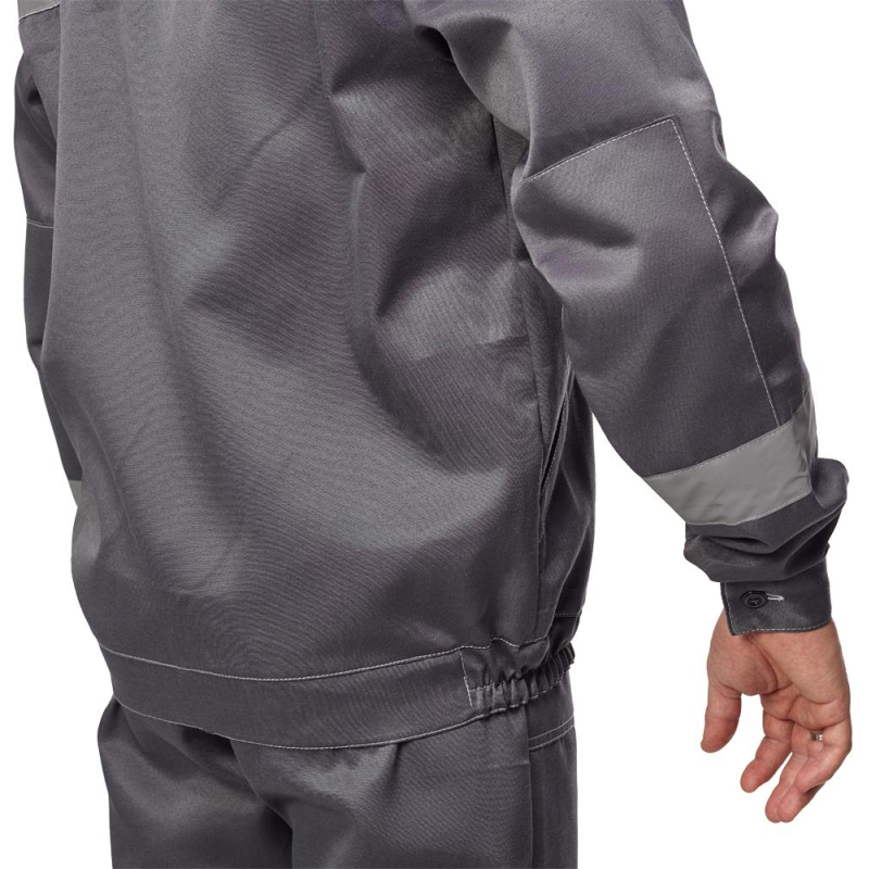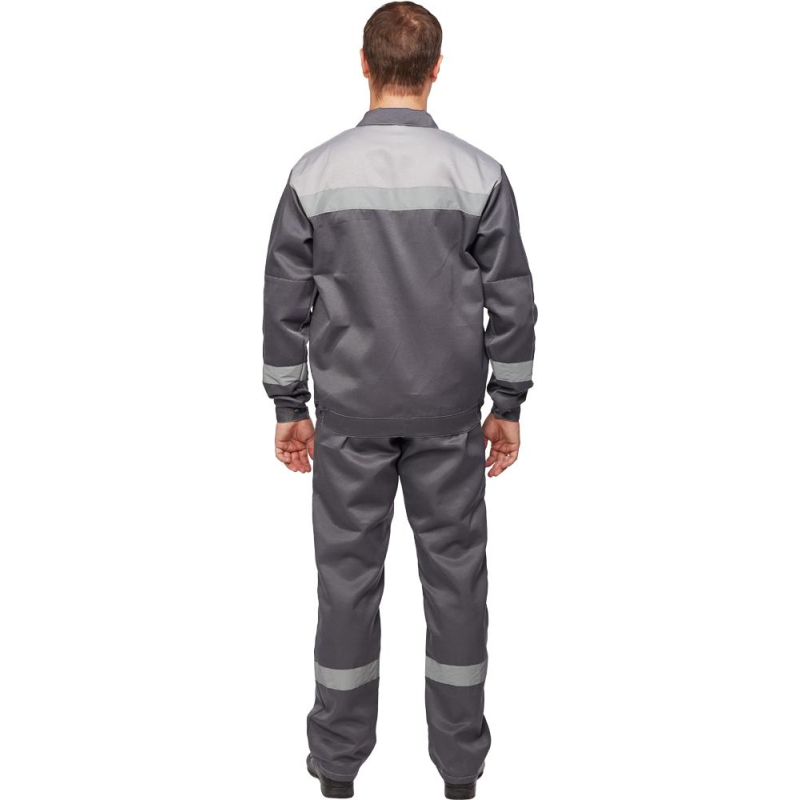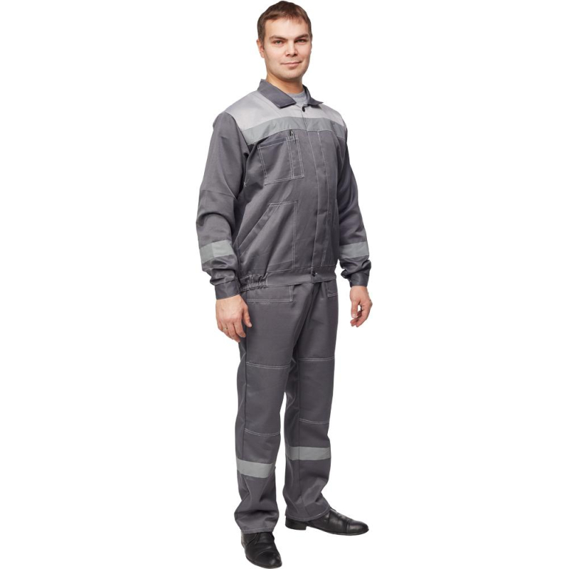 Спецодежда летняя костюм мужской л22-КБР состоит из куртки и брюк (размер 48-50, рост 170-176). Изготовлен из смесовой ткани (80% полиэстер, 20% хлопок) плотностью 210 г/кв.м. Светоотражающая полоса шириной 50 мм размещена на груди, спине, рукавах, а также внизу брюк. Куртка укороченная на поясе, с супатной застежкой на пять петель-пуговиц. Полочка отрезная по линии кокетки, подбор цельнокроеный. Воротник отложной, на куртке три накладных кармана: один верхний нагрудный карман справа с отсрочкой под ручку и два нижних кармана с боковым входом. Рукава с налокотниками и манжетами. Спинка отрезная по линии кокетки. Пояс притачной шириной 4-5 см, с эластичной лентой по бокам. Брюки прямого силуэта, оснащены наколенниками, наличие пяти шлевок. На передней половине брюк расположены два накладных кармана со скошенным входом, гульф (молния). Пояс с пятью шлевками. Весь костюм сшит контрастными нитками белого цвета, двойной строчкой. Костюм предназначен для защиты от общих производственных загрязнений и механических воздействий. ГОСТ 12.4.280-2014, ТР ТС 019/2011. Сферы применения: сельское хозяйство, логистика, легкая промышленность, строительство, озеленение. Коллекция рабочей одежды л22 представлена двумя видами комплектов: куртка и полукомбинезон л22-КПК и куртка и брюки Л22-КБР. ЗАКОНОДАТЕЛЬНЫЕ И ТЕХНИЧЕСКИЕ ДОКУМЕНТЫ: