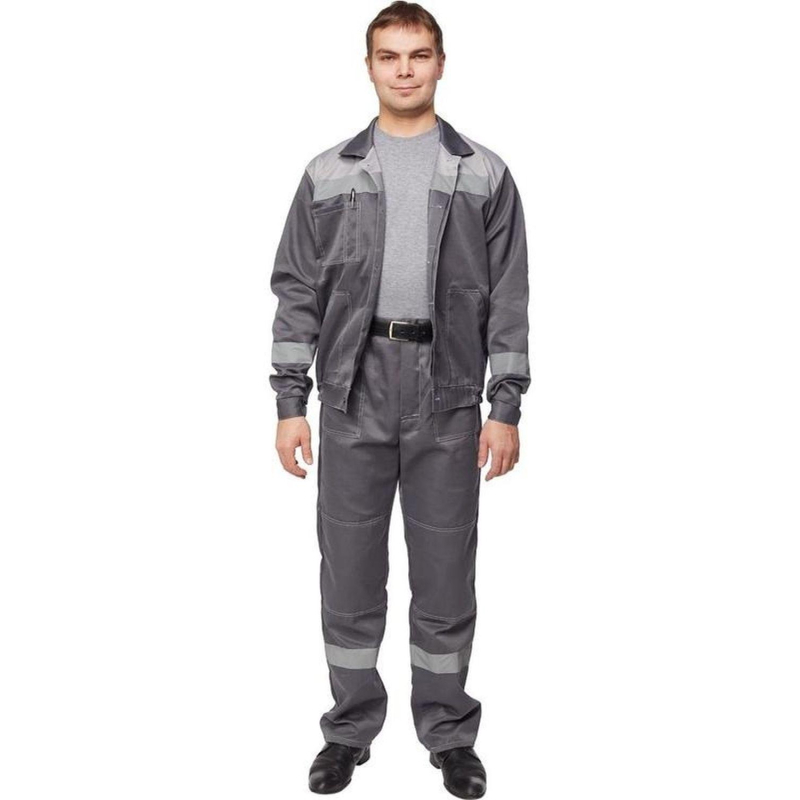 Спецодежда костюм мужской л22-КБР состоит из куртки и брюк (размер 48-50, рост 194-200). Изготовлен из смесовой ткани (80% полиэстер, 20% хлопок) плотностью 210 г/кв.м. Светоотражающая полоса шириной 50 мм размещена на груди, спине, рукавах, а также внизу брюк. Куртка укороченная на поясе, с супатной застежкой на пять петель-пуговиц. Полочка отрезная по линии кокетки, подбор цельнокроеный. Воротник отложной, на куртке три накладных кармана: один верхний нагрудный карман справа с отсрочкой под ручку и два нижних кармана с боковым входом. Рукава с налокотниками и манжетами. Спинка отрезная по линии кокетки. Пояс притачной шириной 4-5 см, с эластичной лентой по бокам. Брюки прямого силуэта, оснащены наколенниками, наличие пяти шлевок. На передней половине брюк расположены два накладных кармана со скошенным входом, гульф (молния). Пояс с пятью шлевками. Весь костюм сшит контрастными нитками белого цвета, двойной строчкой. Костюм предназначен для защиты от общих производственных загрязнений и механических воздействий. ГОСТ 12.4.280-2014, ТР ТС 019/2011. Коллекция рабочей одежды л22 представлена двумя видами комплектов: куртка и полукомбинезон л22-КПК и куртка и брюки Л22-КБР. ЗАКОНОДАТЕЛЬНЫЕ И ТЕХНИЧЕСКИЕ ДОКУМЕНТЫ: