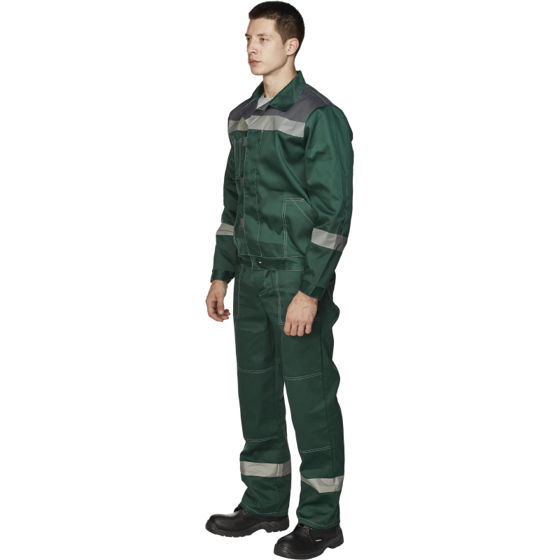 Костюм летний мужской л20-КБР состоит из куртки и брюк. Изготовлен из смесовой ткани (65% полиэстер, 35% хлопок), плотностью 210 г/кв.м. Куртка прямого силуэта с притачным поясом и боковыми вставками с эластичной лентой, для лучшего прилегания. Для защиты от истирания локтевая и коленная части костюма усилены. Все элементы костюма выделены контрастной отстрочкой. На кокетке, рукавах, и брючинах светоотражающая полоса. Костюм обеспечивает защиту от производственных загрязнений. Размер: 52-54. Рост: 170-176. ЗАКОНОДАТЕЛЬНЫЕ И ТЕХНИЧЕСКИЕ ДОКУМЕНТЫ:
