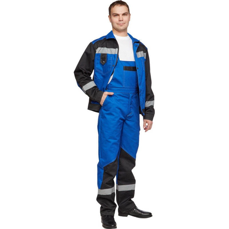 Костюм рабочий летний мужской л21-КПК КОС212 с СОП васильковый/черный (размер 64-66, рост 182-188). Коллекция спецодежды л21 представляет собой надежное решение для защиты от общих производственных загрязнений и механических воздействий. Костюм мужской л21-КПК состоит из куртки и полукомбинезона. Идеально подходит для использования в сельском хозяйстве, логистике, легкой и тяжелой промышленности, а также в строительстве. Костюм изготовлен из смесовой ткани, состоящей на 65% из полиэстера и на 35% из хлопка. Плотность материала составляет 240 г/кв.м. Такая комбинация обеспечивает высокую износостойкость и комфорт при носке. Материал не имеет специальной пропитки, но его структура обеспечивает достаточную защиту от загрязнений. Защитные свойства: - З - защита от общих производственных загрязнений. Куртка имеет прямой силуэт и регулируется по фигуре с помощью кнопок на поясе. Застегивается на молнию и кнопки. На куртке два верхних накладных кармана. Рукава снабжены налокотниками и манжетами, что повышает комфорт и долговечность изделия. Полукомбинезон также имеет прямой силуэт и застегивается на пуговицы. Впереди расположены два накладных кармана со скошенным входом и один верхний накладной карман. Сзади полукомбинезон имеет два накладных кармана, один из которых на кнопке, а также боковой накладной карман на кнопке. Светоотражающие полосы шириной 50 мм размещены на груди, спине, рукавах и внизу полукомбинезона, обеспечивая хорошую видимость в условиях недостаточной освещенности. Рекомендации по уходу: для продления срока службы изделия рекомендуется соблюдать инструкции по стирке и уходу, указанные на этикетке. Стандарты: ГОСТ 12.4.280-2014, ТР ТС 019/2011. Коллекция спецодежды Премиум-класса л21 выполнена в стильном, функциональном дизайне, в широкой цветовой гамме. Костюмы, представленные в ней, предназначены для защиты от общих производственных загрязнений и механических воздействий. Рекомендуется для инженерно-технических работников. Цвет на изображении товара может отличаться от оригинала из-за особенностей цветопередачи монитора. ЗАКОНОДАТЕЛЬНЫЕ И ТЕХНИЧЕСКИЕ ДОКУМЕНТЫ: