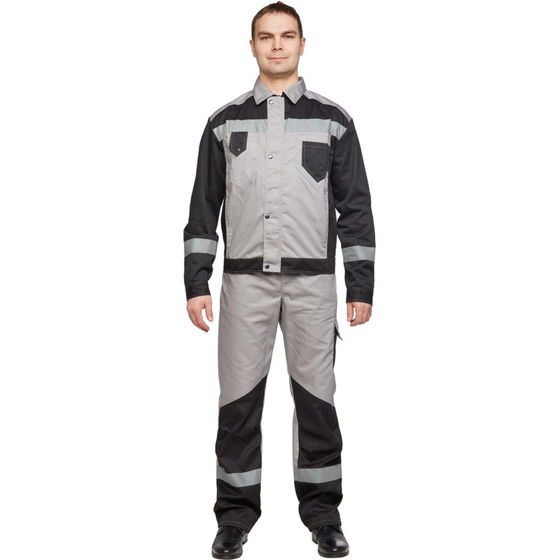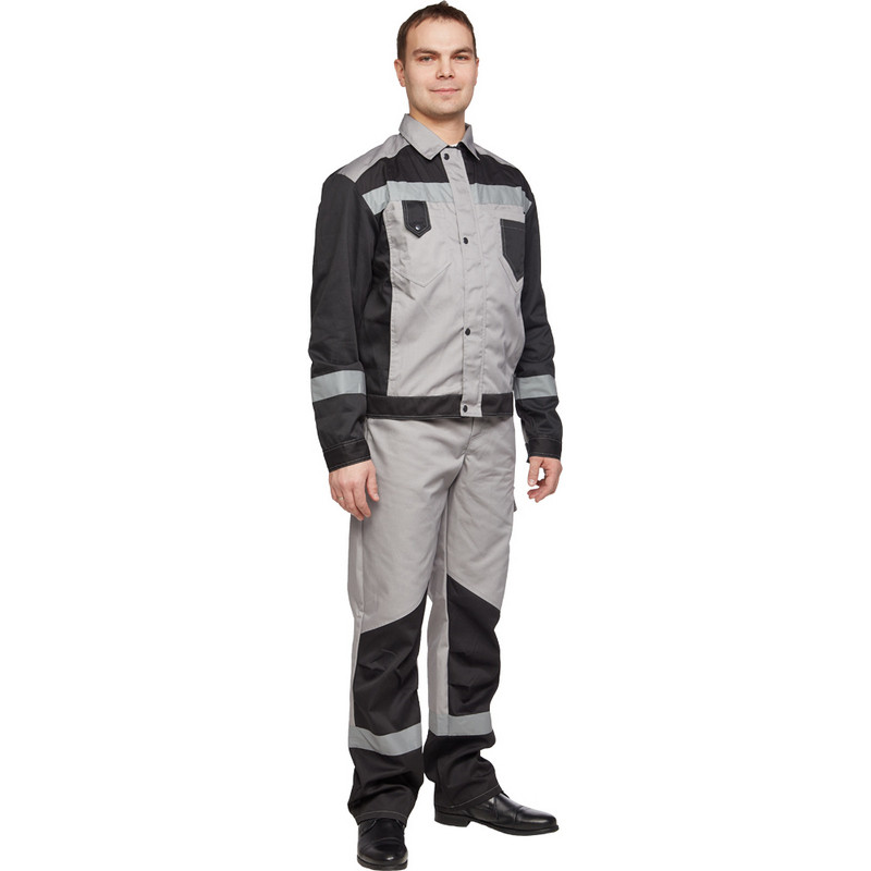 Костюм рабочий летний мужской л21-КПК КОС212 с СОП серый/черный (размер 56-58, рост 182-188). Коллекция спецодежды л21 представляет собой надежное решение для защиты от общих производственных загрязнений и механических воздействий. Костюм мужской л21-КПК состоит из куртки и полукомбинезона. Идеально подходит для использования в сельском хозяйстве, логистике, легкой и тяжелой промышленности, а также в строительстве. Костюм изготовлен из смесовой ткани, состоящей на 65% из полиэстера и на 35% из хлопка. Плотность материала составляет 240 г/кв.м. Такая комбинация обеспечивает высокую износостойкость и комфорт при носке. Материал не имеет специальной пропитки, но его структура обеспечивает достаточную защиту от загрязнений. Защитные свойства: - З - защита от общих производственных загрязнений. Куртка имеет прямой силуэт и регулируется по фигуре с помощью кнопок на поясе. Застегивается на молнию и кнопки. На куртке два верхних накладных кармана. Рукава снабжены налокотниками и манжетами, что повышает комфорт и долговечность изделия. Полукомбинезон также имеет прямой силуэт и застегивается на пуговицы. Впереди расположены два накладных кармана со скошенным входом и один верхний накладной карман. Сзади полукомбинезон имеет два накладных кармана, один из которых на кнопке, а также боковой накладной карман на кнопке. Светоотражающие полосы шириной 50 мм размещены на груди, спине, рукавах и внизу полукомбинезона, обеспечивая хорошую видимость в условиях недостаточной освещенности. Рекомендации по уходу: для продления срока службы изделия рекомендуется соблюдать инструкции по стирке и уходу, указанные на этикетке. Стандарты: ГОСТ 12.4.280-2014, ТР ТС 019/2011. Коллекция спецодежды Премиум-класса л21 выполнена в стильном, функциональном дизайне, в широкой цветовой гамме. Костюмы, представленные в ней, предназначены для защиты от общих производственных загрязнений и механических воздействий. Рекомендуется для инженерно-технических работников. Цвет на изображении товара может отличаться от оригинала из-за особенностей цветопередачи монитора.