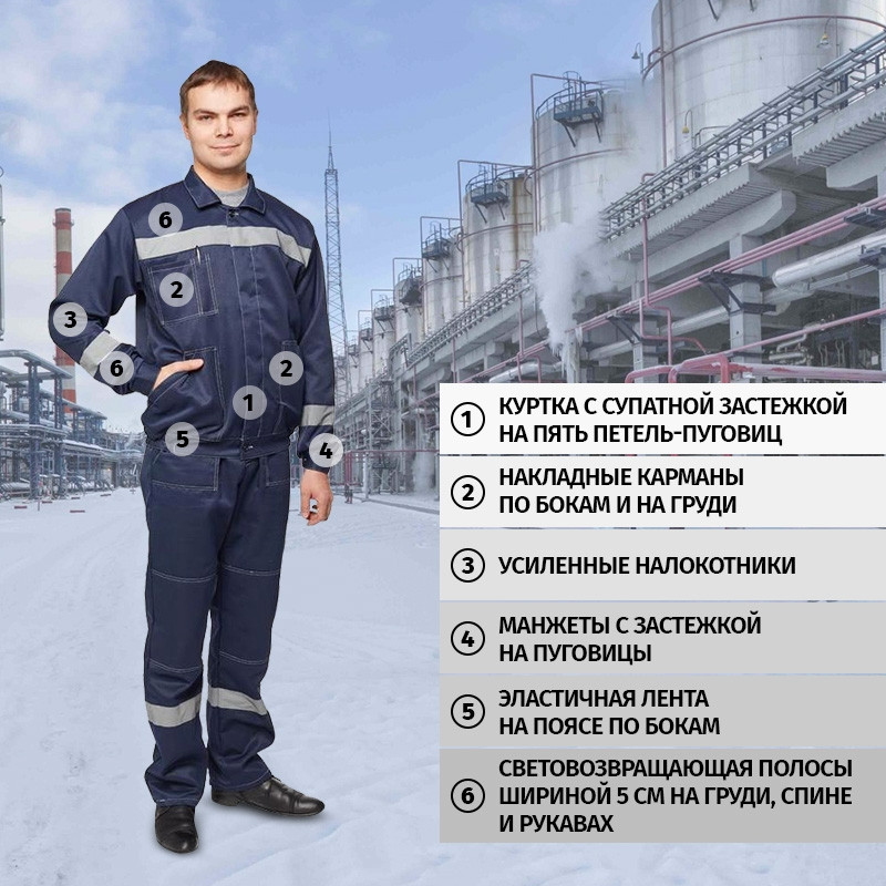Костюм рабочий летний мужской л22-КПК с СОП синий (размер 68-70, рост 170-176). Коллекция спецодежды л22 представляет собой экономичное решение для рабочих в различных отраслях, включая сельское хозяйство, логистику, легкую промышленность, строительство и озеленение. Основное преимущество костюма л22-КПК заключается в его способности обеспечивать защиту от общих производственных загрязнений и механических воздействий. Костюм состоит из куртки и полукомбинезона, что делает его удобным и функциональным для широкого спектра работ. Костюм изготовлен из смесовой ткани, состоящей на 80% из полиэстера и на 20% из хлопка, с плотностью материала 210 г/кв.м. Эта ткань сочетает в себе прочность полиэстера и комфорт хлопка, обеспечивая высокую износостойкость и долговечность изделия. Костюм выполнен в темно-синем цвете, что придает ему строгий и практичный вид. Куртка костюма имеет укороченный дизайн с прямым силуэтом, что обеспечивает свободу движений и комфорт при носке. Застежка выполнена в виде супатной застежки на пять петель-пуговиц, что обеспечивает надежное закрытие и защищает от ветра. Воротник отложной, что добавляет классический элемент в дизайн куртки. Три накладных кармана, один из которых верхний нагрудный с отсрочкой под ручку, и два нижних с боковым входом, предоставляют достаточное пространство для хранения необходимых мелочей, что удобно при выполнении работ. Рукава куртки оснащены налокотниками и манжетами, что обеспечивает дополнительную защиту и увеличивает срок службы изделия. Спинка куртки отрезная по линии кокетки, что добавляет структурную прочность. Пояс притачной шириной 4-5 см с эластичной лентой по бокам позволяет регулировать посадку куртки по фигуре, обеспечивая дополнительный комфорт. Полукомбинезон имеет прямой силуэт и оснащен наколенниками, что обеспечивает дополнительную защиту и удобство при работе в коленно-локтевом положении. Пояс полукомбинезона снабжен пятью шлевками для ремня, что позволяет дополнительно закрепить полукомбинезон и улучшить его посадку. Два накладных кармана со скошенным входом на передней половине полукомбинезона обеспечивают удобный доступ к необходимым инструментам и материалам. Весь костюм сшит контрастными белыми нитками с двойной строчкой, что не только повышает прочность швов, но и придает изделию стильный вид. Светоотражающая полоса шириной 50 мм размещена на груди, спине, рукавах и внизу полукомбинезона, обеспечивая высокую видимость и безопасность работника в условиях недостаточной освещенности. Рекомендации по уходу: для продления срока службы изделия рекомендуется соблюдать инструкции по стирке и уходу, указанные на этикетке. Это поможет сохранить первоначальные свойства материала и внешний вид костюма на длительный срок. Костюм соответствует стандартам ГОСТ 12.4.280-2014 и ТР ТС 019/2011. Коллекция рабочей одежды л22 представлена двумя видами комплектов: куртка и полукомбинезон л22-КПК и куртка и брюки Л22-КБР. Цвет на изображении товара может отличаться от оригинала из-за особенностей цветопередачи монитора.