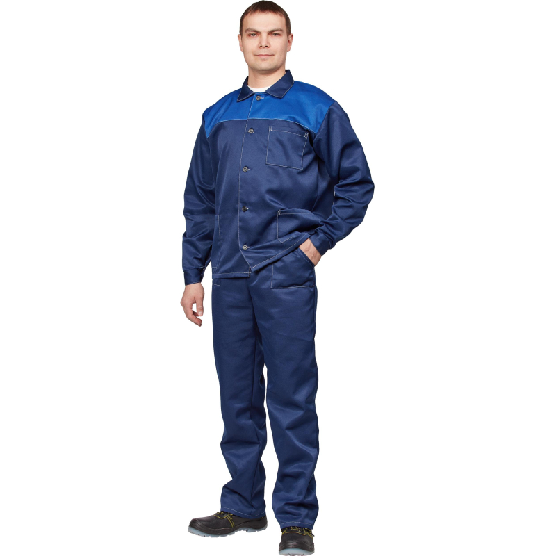 Спецодежда летняя костюм рабочий мужской л16-КПК (размер 64-66, рост 158-164) состоит из куртки и полукомбинезона. Изготовлен из смесовой ткани (20% хлопок, 80% полиэфир, плотность 190 г/кв.м.), с водоотталкивающей пропиткой. Полукомбинезон c накладными карманами, гульфиком на пуговицах, эластичной тесьмой по талии спинки и регулируемыми бретелями. Куртка прямого силуэта c объемными накладными карманами и супатнoй застежкой на пуговицы. ГОСТ 12.4.280-2014, ТР ТС 019/2011. Сферы применения: сельское хозяйство, логистика, легкая промышленность, строительство, озеленение. Коллекция спецодежды л16 представлена комплектами куртка-брюки л16-КБР и куртка-полукомбинезон л16-КПК.