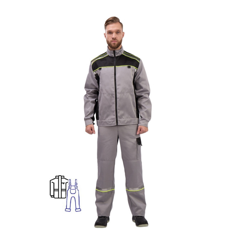 Спецодежда летняя костюм мужской л26-КПК состоит из куртки и полукомбинезона (размер 52-54, рост 182-188). Изготовлен из смесовой ткани (68% полиэстер, 32% хлопок) плотностью 245 г/кв.м. Куртка с центральной застежкой на молнию оснащена светоотражающей полосой на груди и спине. Полукомбинезон имеет нагрудный карман с клапаном, 2 боковых кармана: боковой с клапаном с левой стороны на брючине, с правой стороны инструментальный карман. Костюм обеспечивает защиту от производственных загрязнений. Сферы применения: сельское хозяйство, логистика, строительство. ТР ТС 019/2011.Коллекция рабочей одежды л26 представлена комплектами куртка и полукомбинезон л26-КПК.