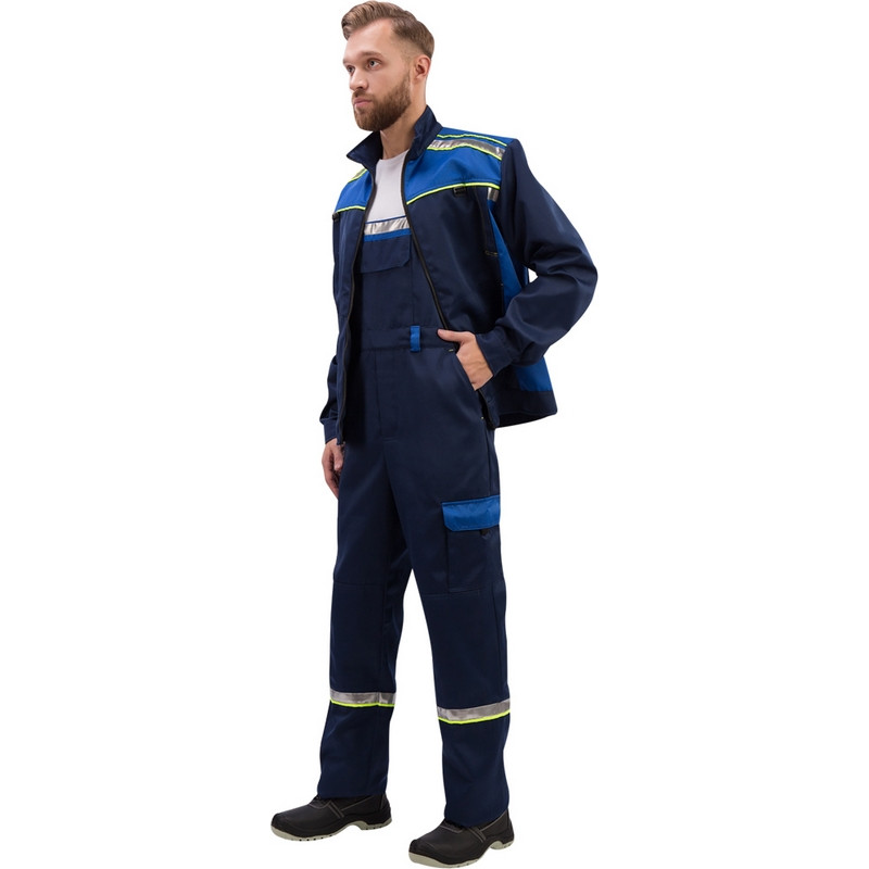 Спецодежда летняя костюм мужской л26-КПК состоит из куртки и полукомбинезона (размер 64-66, рост 182-188). Изготовлен из смесовой ткани (68% полиэстер, 32% хлопок) плотностью 245 г/кв.м. Куртка с центральной застежкой на молнию оснащена светоотражающей полосой на груди и спине. Полукомбинезон имеет нагрудный карман с клапаном, 2 боковых кармана: боковой с клапаном с левой стороны на брючине, с правой стороны инструментальный карман. Костюм обеспечивает защиту от производственных загрязнений. Сферы применения: сельское хозяйство, логистика, строительство. ТР ТС 019/2011.Коллекция рабочей одежды л26 представлена комплектами куртка и полукомбинезон л26-КПК.