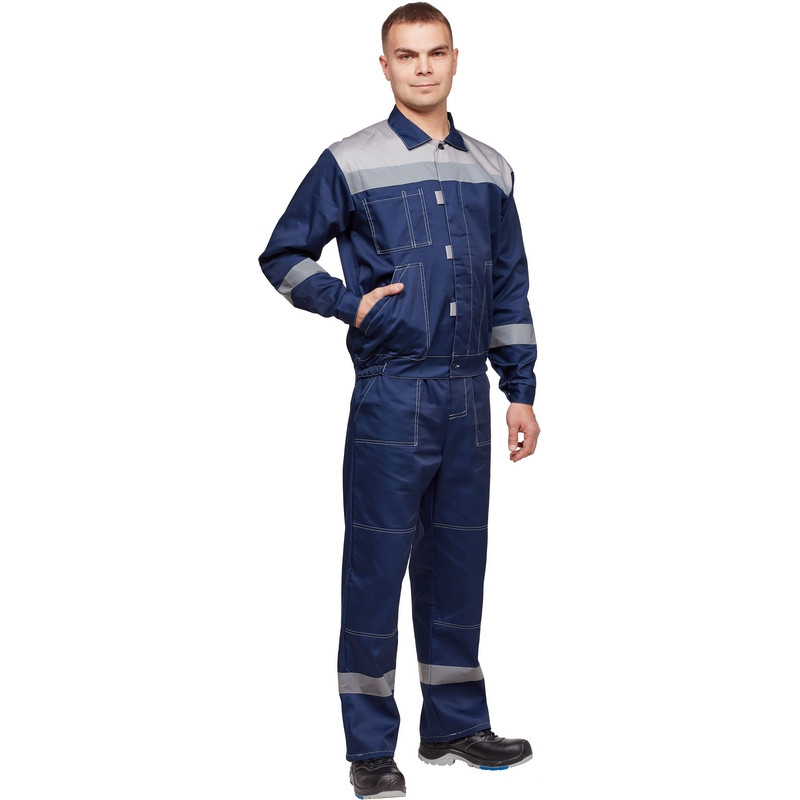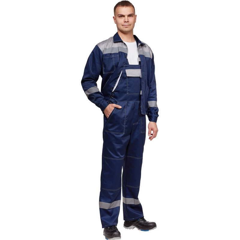 Спецодежда летняя костюм мужской л20-КПК состоит из куртки и полукомбинезона (размер 60-62, рост 158-164). Изготовлен из смесовой ткани (65% полиэстер, 35% хлопок), плотностью 210 г/кв.м. Куртка укороченная на поясе, с супатной застежкой на пуговицы, супатная застежка оснащена флажками для удобства. Рукава с налокотниками и манжетами. Полукомбинезон c накладными карманами, гульфиком на пуговицах, эластичной тесьмой по талии спинки и регулируемыми бретелями. Куртка прямого силуэта c объемными накладными карманами и супатнoй застежкой на пуговицы. Для защиты от истирания локтевая и коленная части костюма усилены. Все элементы костюма выделены контрастной отстрочкой. Куртка и полукомбинезон оснащены светоотражающей полосой - 5 см. Костюм обеспечивает защиту от производственных загрязнений. Сфера применения: озеленение. ГОСТ 12.4.280-2014, ТР ТС 019/2011. ЗАКОНОДАТЕЛЬНЫЕ И ТЕХНИЧЕСКИЕ ДОКУМЕНТЫ: